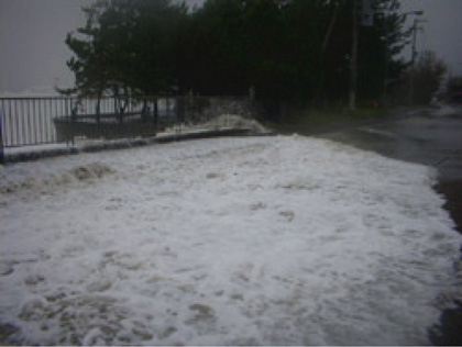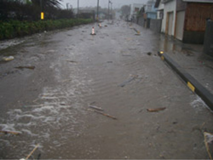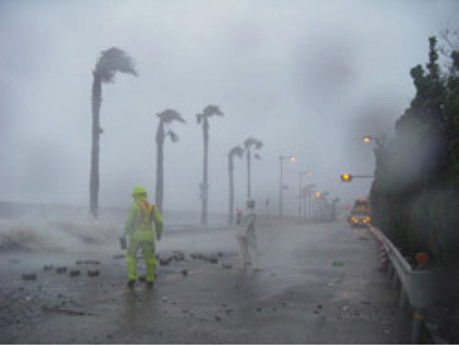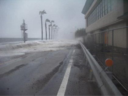 平成16年台風23号の被害 一般国道42号では、連続雨量250mm以上で通行止めを行う箇所が5箇所、28.9kmに達しています。 また、越波により通行が危険になる箇所もあります。 平成16年には、台風23号の他、多数の台風が上陸、接近し道路交通網に大きな影響を与えました。 ①印南町切目大橋北 ②田辺市芳養町 ③南部小学校付近 ④南部中学校付近 ⑤みなべ町北道
