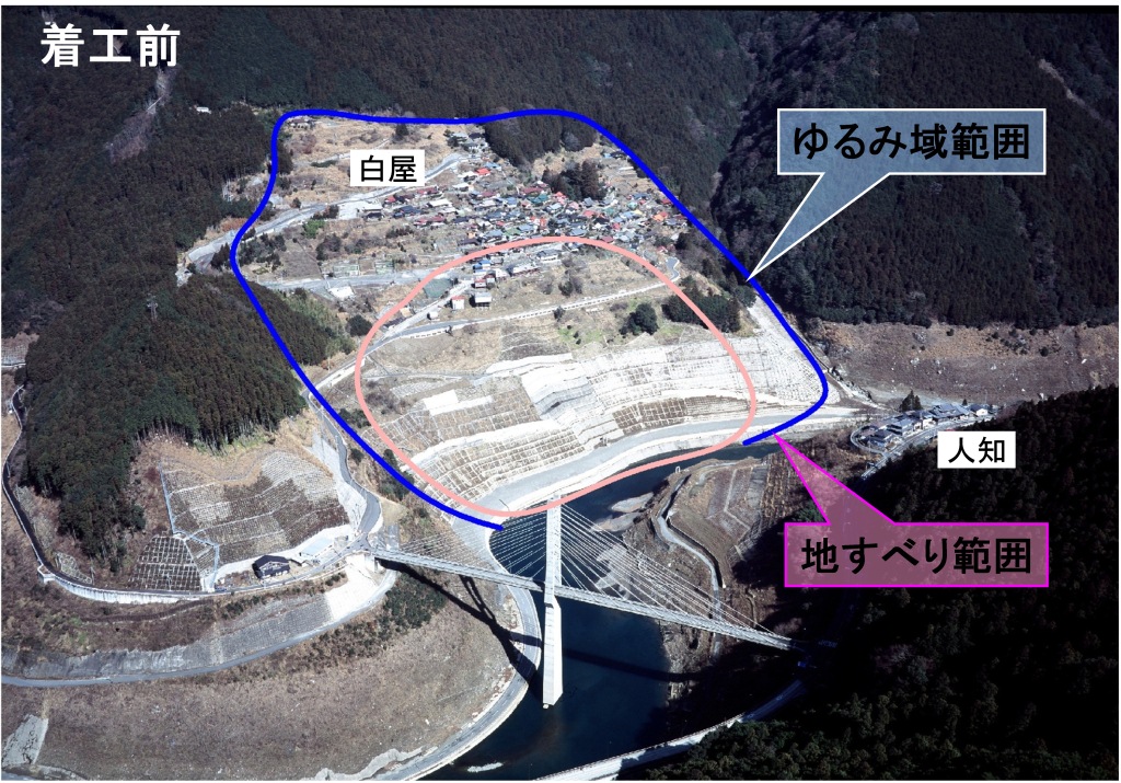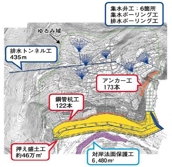 「すべろうとする層」の前面に盛土を行い、すべりを受け止めます。