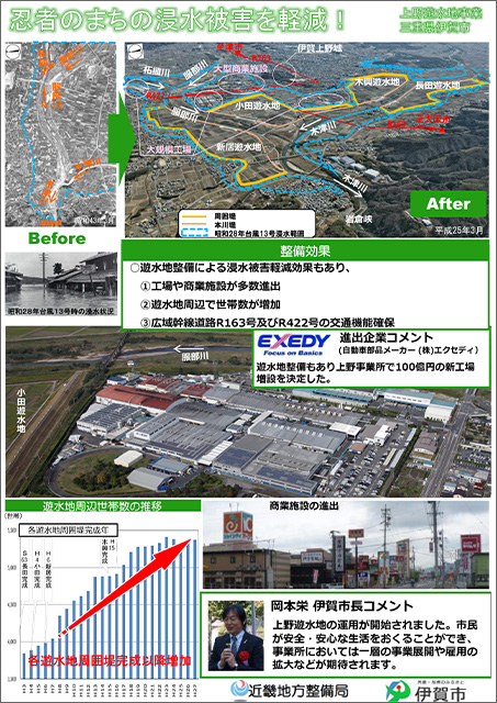 上野盆地は木津川、服部川、柘植川の3川が合流した直下流に岩倉峡という狭窄部があることから、洪水による浸水被害常襲地帯となっていました。