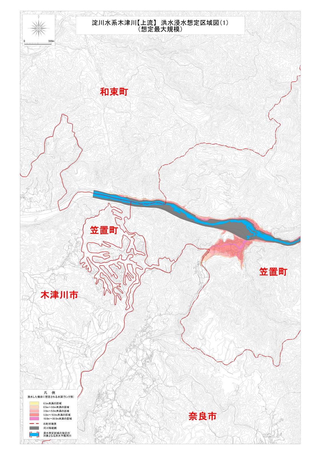 洪水浸水想定区域図(想定最大規模)の詳細平面図(1)・・・和束町・笠置町・奈良市