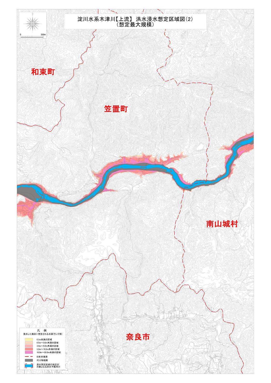 洪水浸水想定区域図(想定最大規模)の詳細平面図(2)・・・笠置町・南山城村