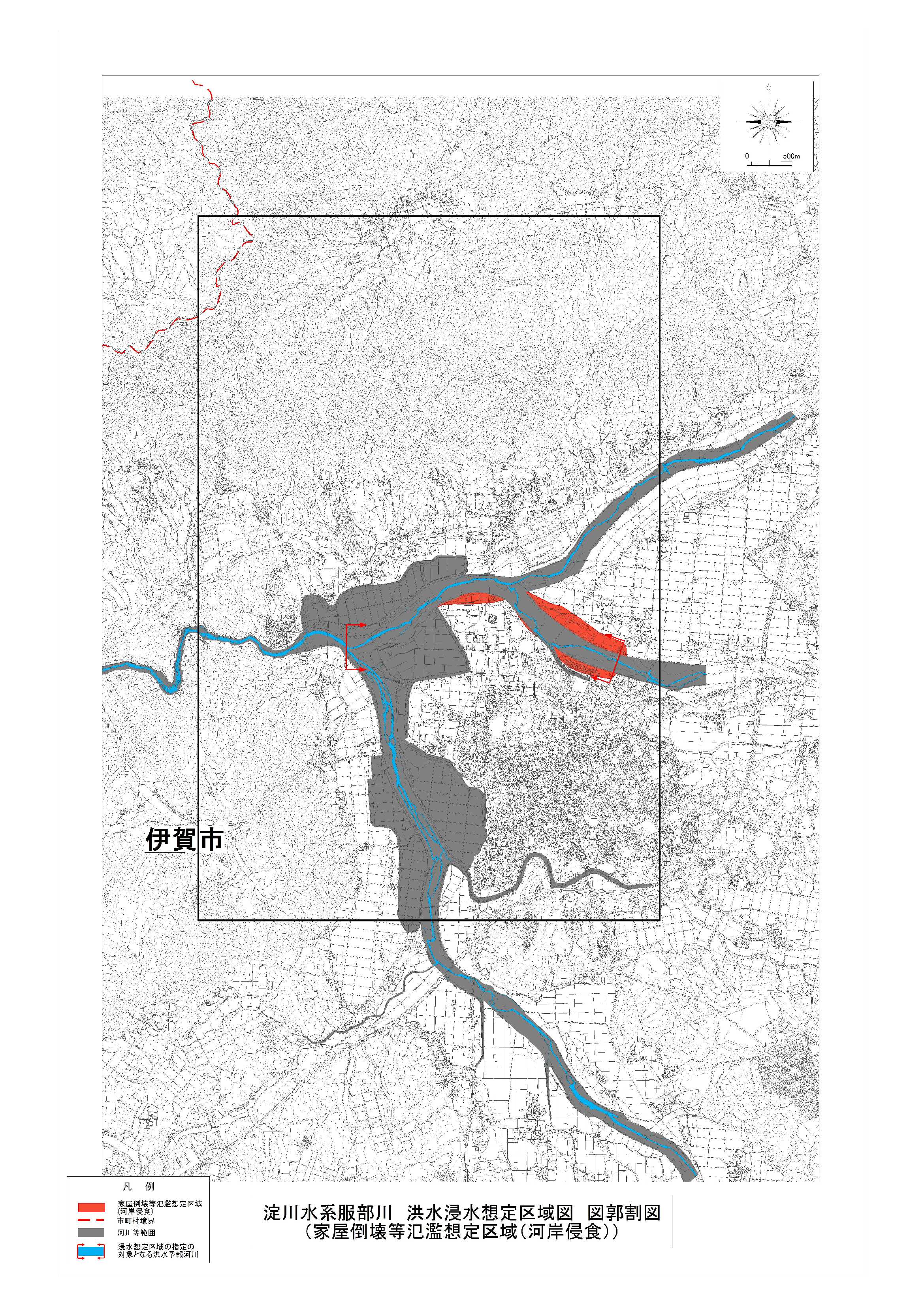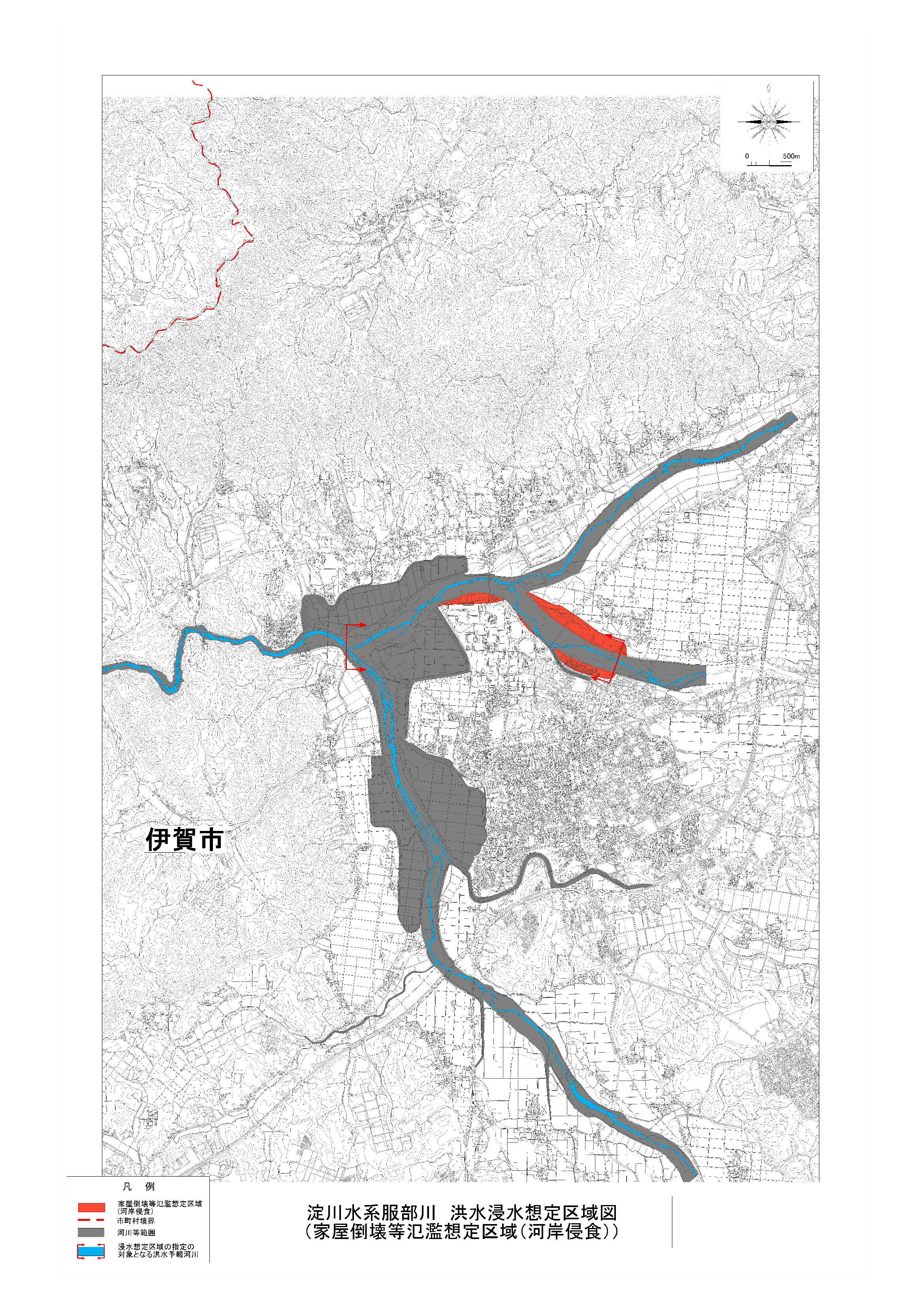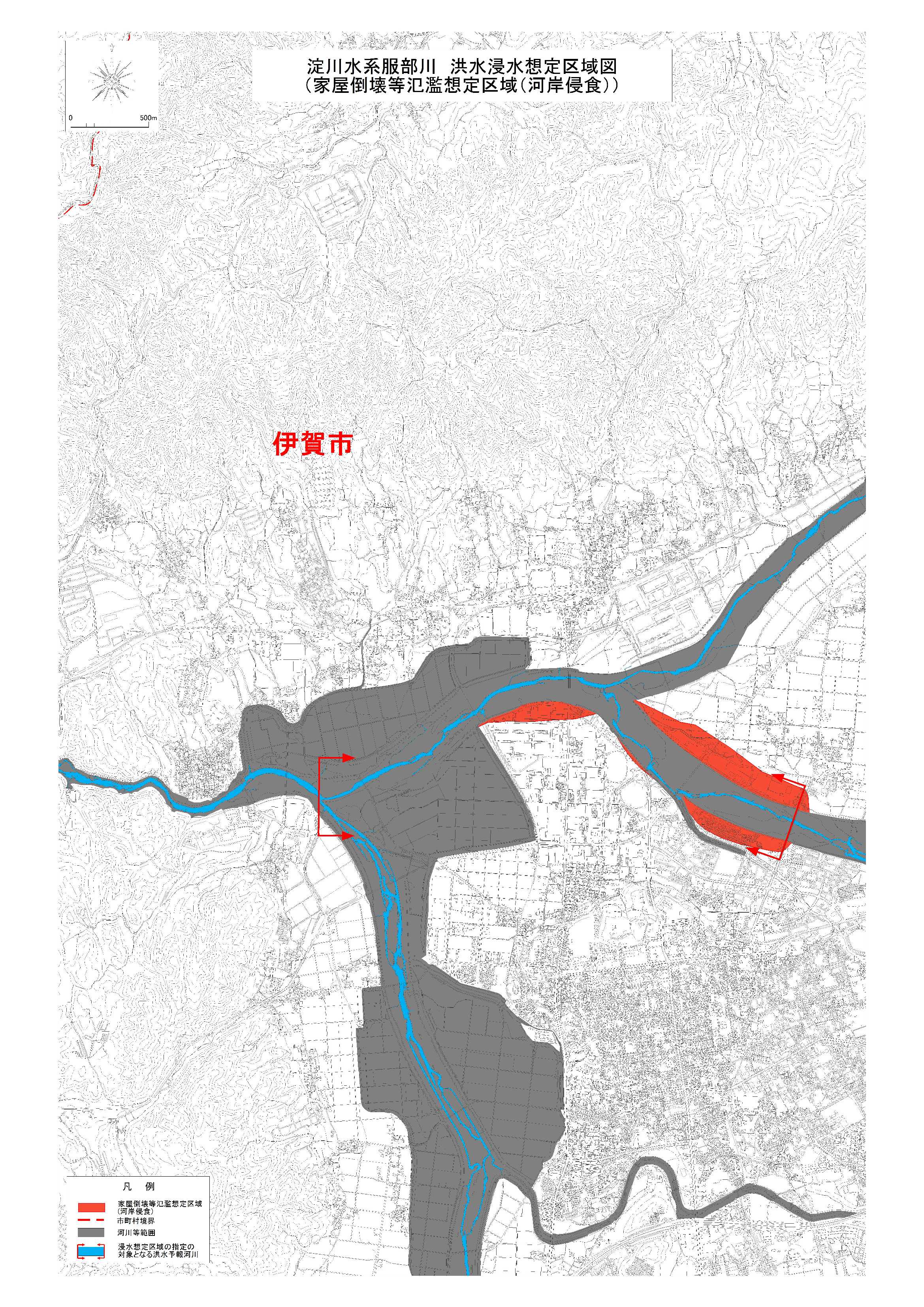 洪水浸水想定区域図(家屋倒壊(河岸浸食))の詳細平面図(1)・・・伊賀市