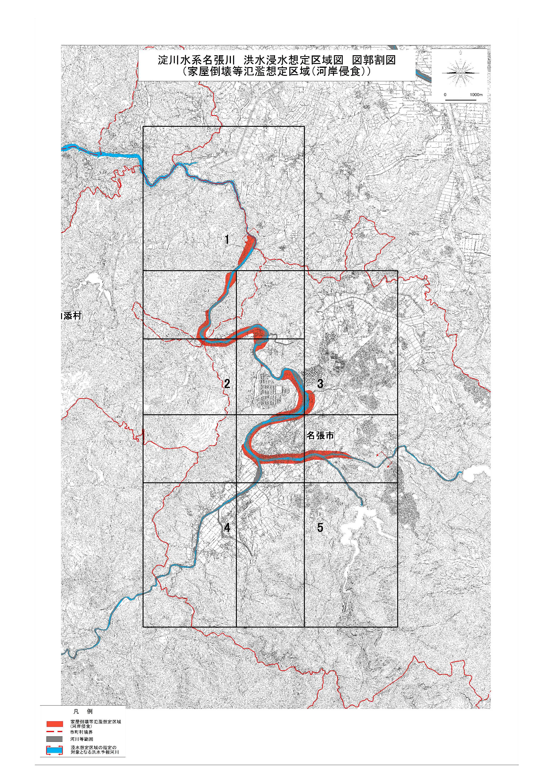 洪水浸水想定区域図(家屋倒壊(河岸浸食))の図郭割図・目次