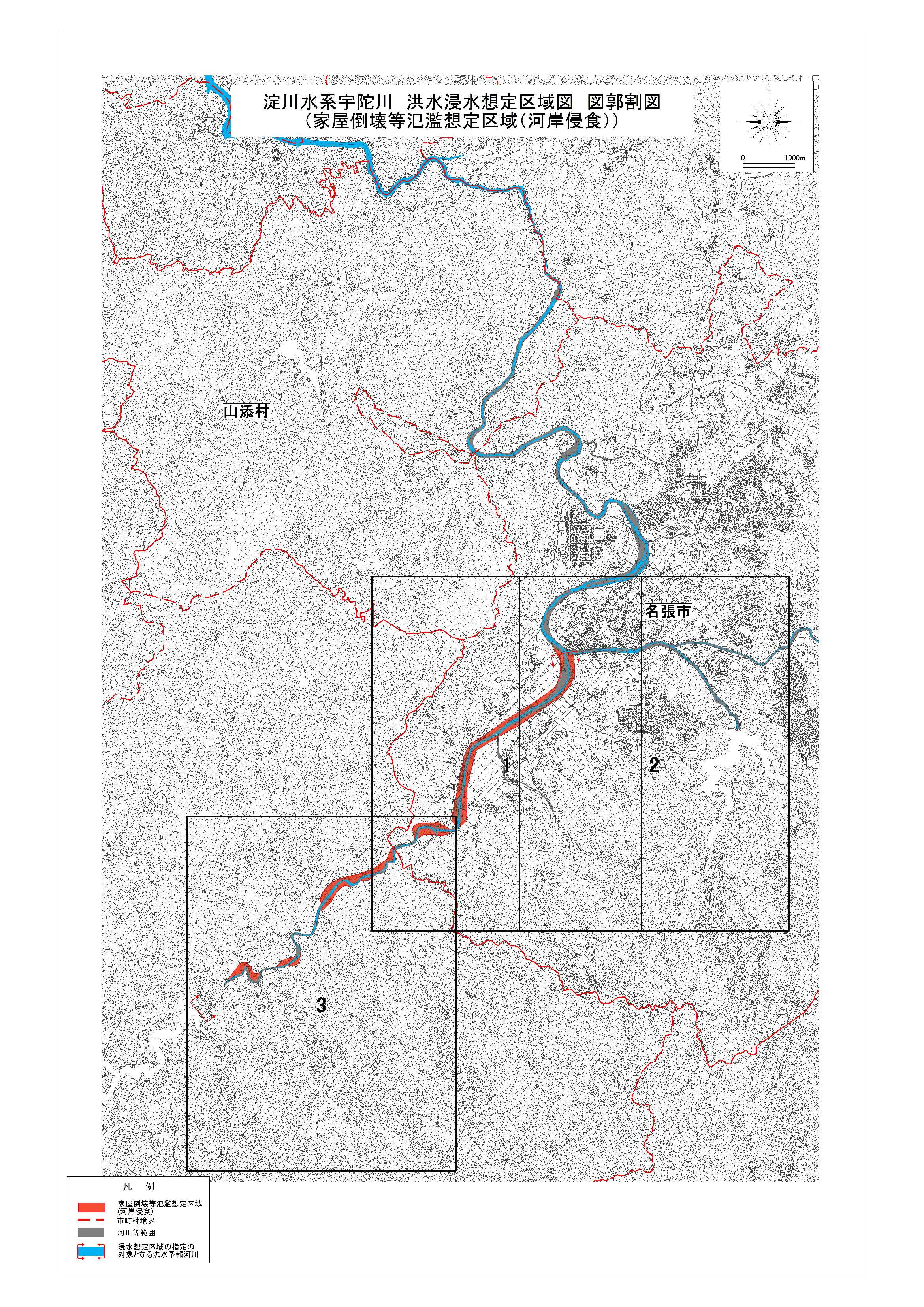 洪水浸水想定区域図(家屋倒壊(河岸浸食))の図郭割図・目次