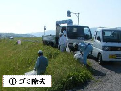 除草前に、人力でゴミを除去します。