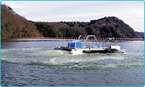 高山ダムでは、空気のあわで水をじゅんかんさせて、植物(しょくぶつ)プランクトンがふえないようにしています。このほかにも、植物(しょくぶつ)プランクトンの発生をおさえ水をきれいにする、さまざまなしくみがあります。