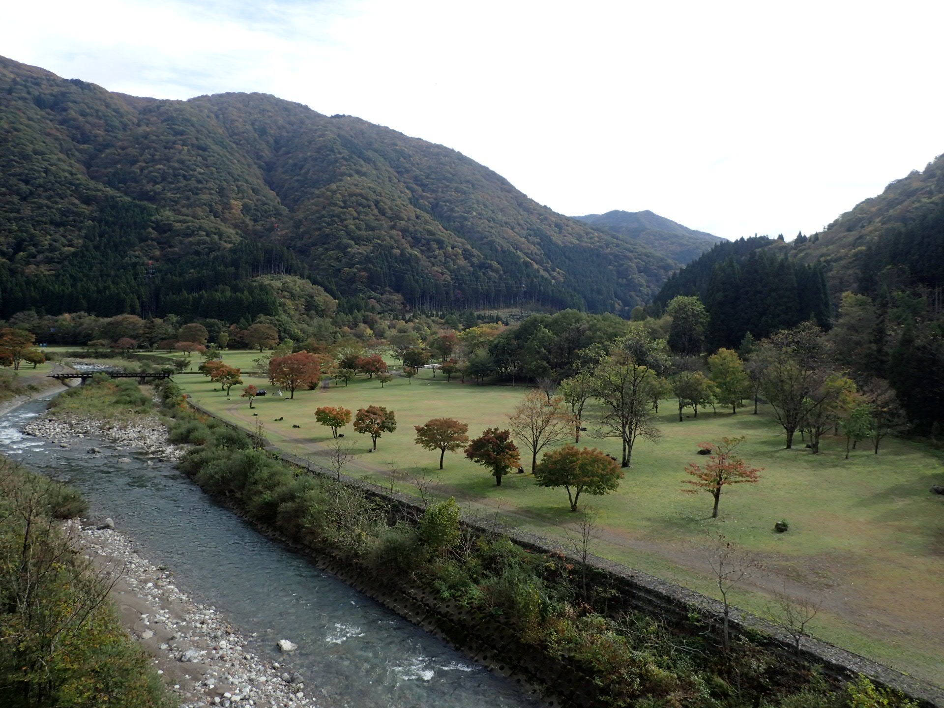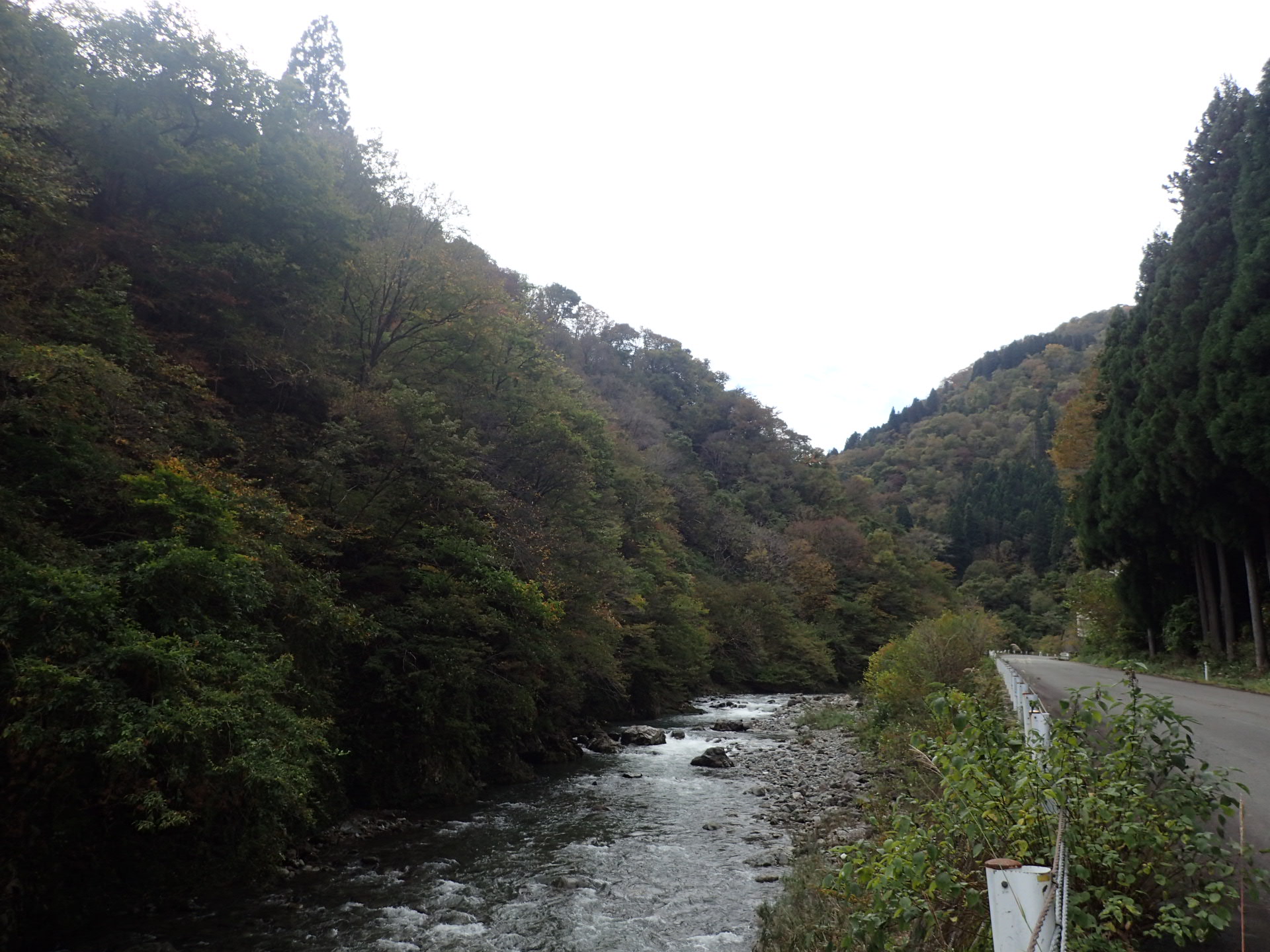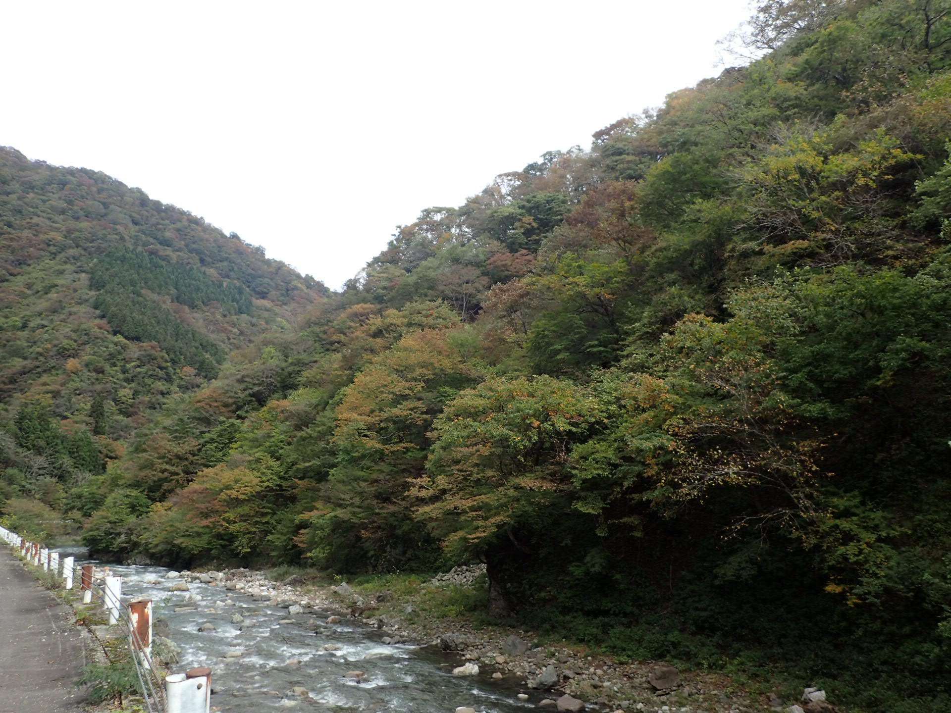 上流の一部では少し落葉している箇所が見られるようになってきました。