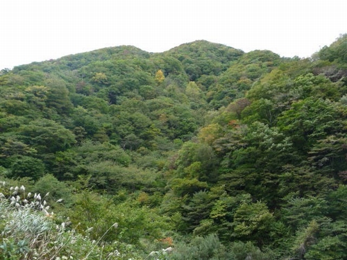 | 貯水池周辺の尾根部(標高600m程度)付近では、黄色から赤色が目立ってきており、紅葉の盛りを迎えようとしています。 |