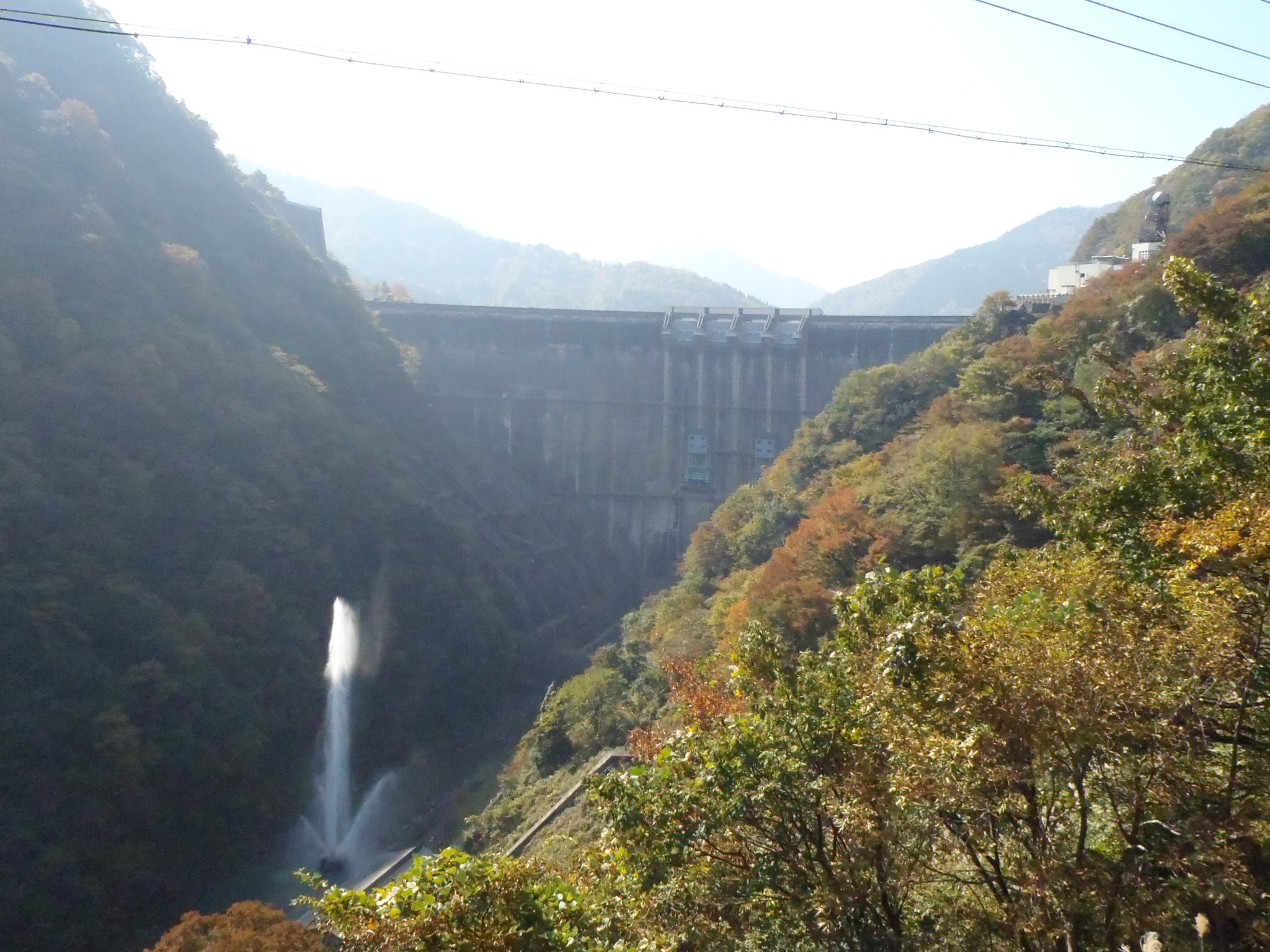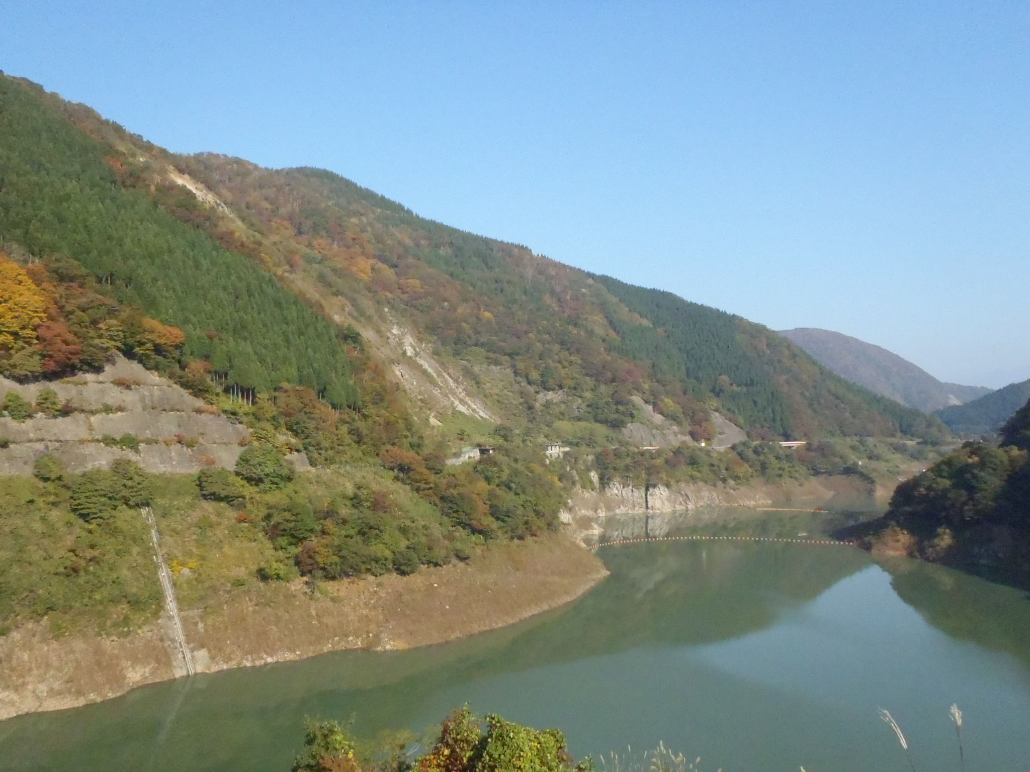 | 11月に入りまだ少し青葉も見られますが、真名川ダム周辺の紅葉は見頃の時期になりました。 |