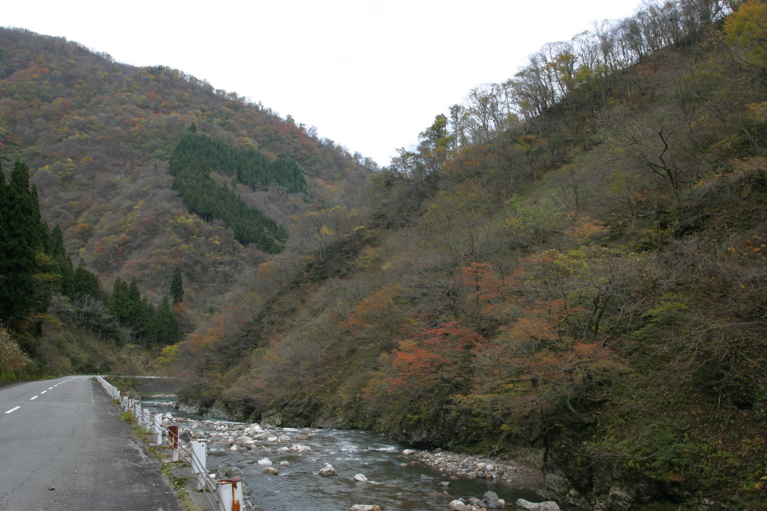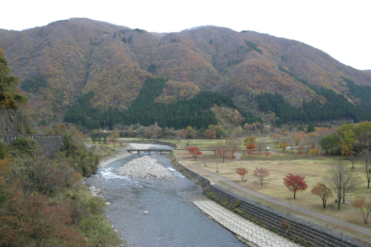 麻那姫湖(真名川ダム湖)周辺では落葉もかなり進み、