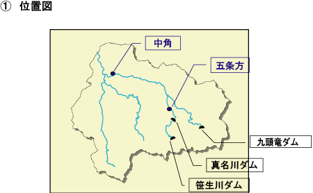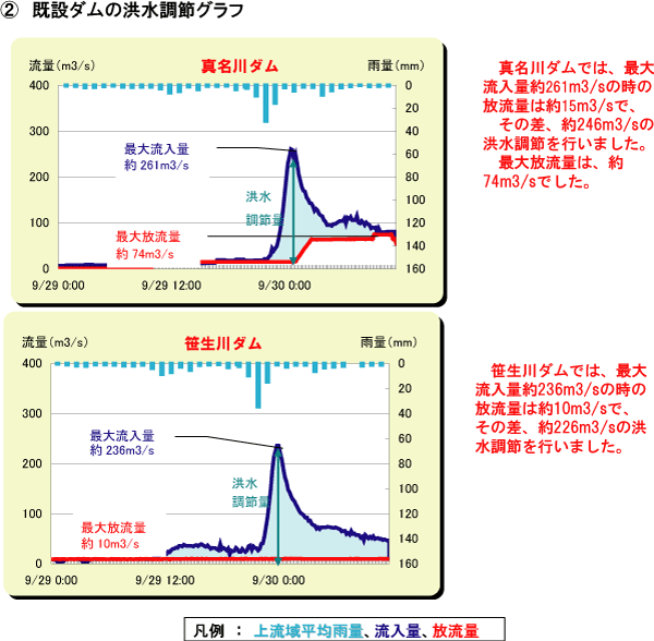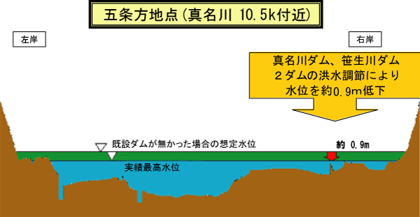 ダムの洪水調節により、ダム下流河川の各地点において、水位の低減効果があったものと推定されます。 |