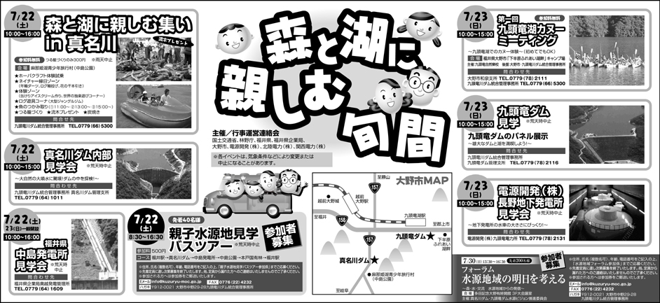 | 2006.07.07 | お知らせ | イベント「森と湖に親しむ旬間」とフォーラム「水源地域の明日を考える」開催日時について |