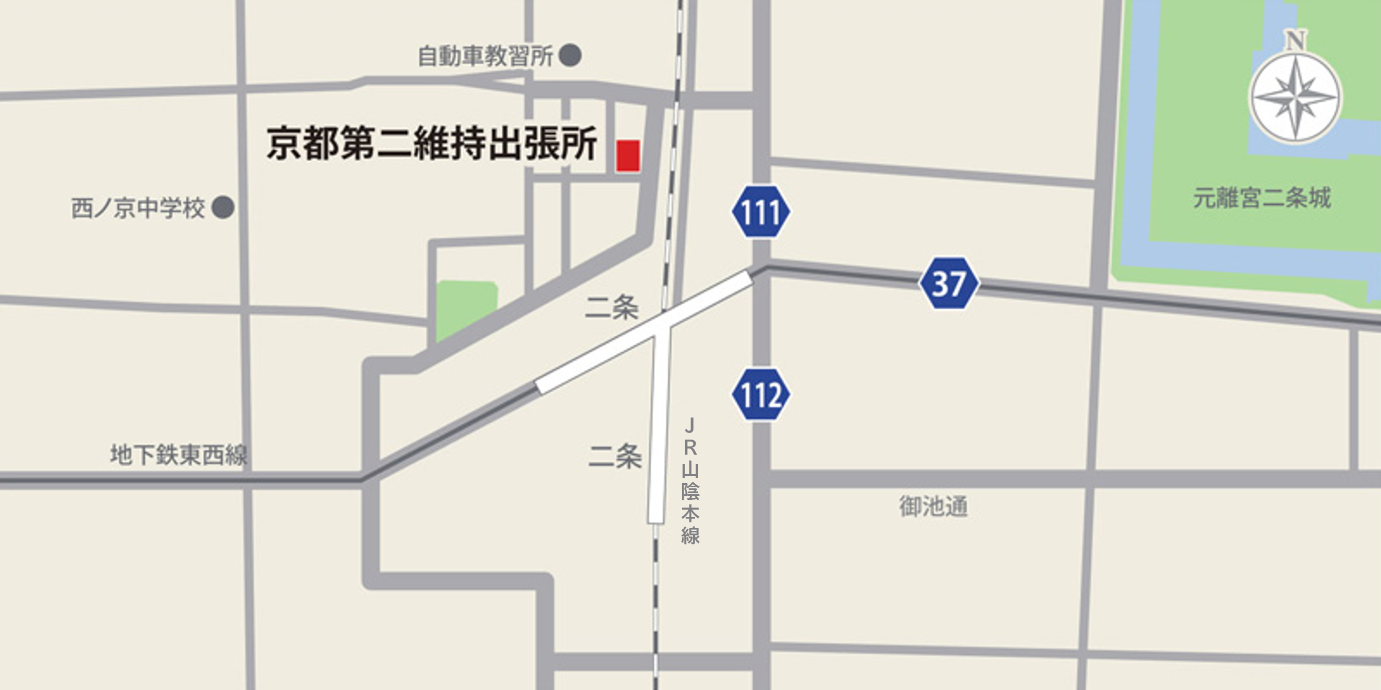 | 京都第二維持出張所 | ●一般国道9号、171号、478号に関する道路管理 ●交通安全工事(歩道設置・交差点改良) ●維持修繕工事 ●許認可の受付(※特殊車両通行許可申請受付は事務所管理第一課) |