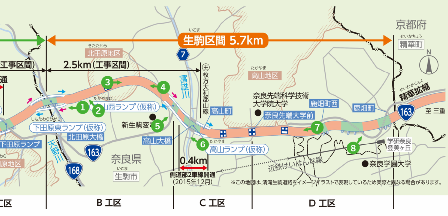 | D | 清滝生駒道路西改良他工事 (受注者 : (株)尾田組) |