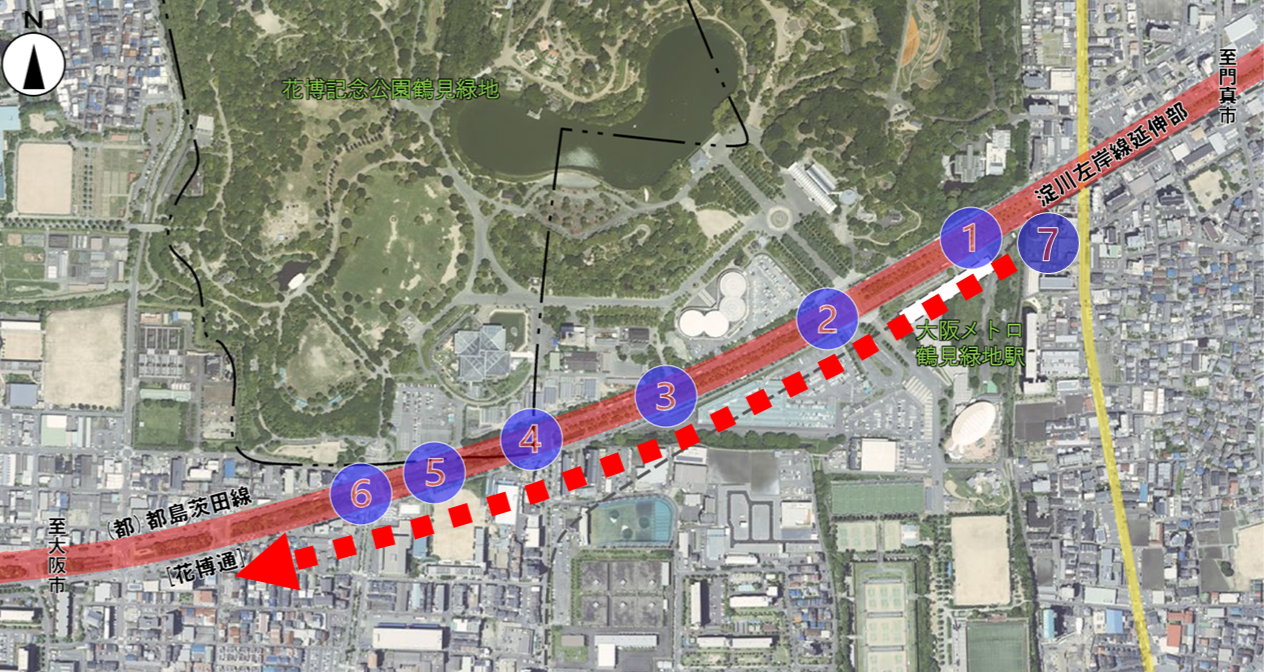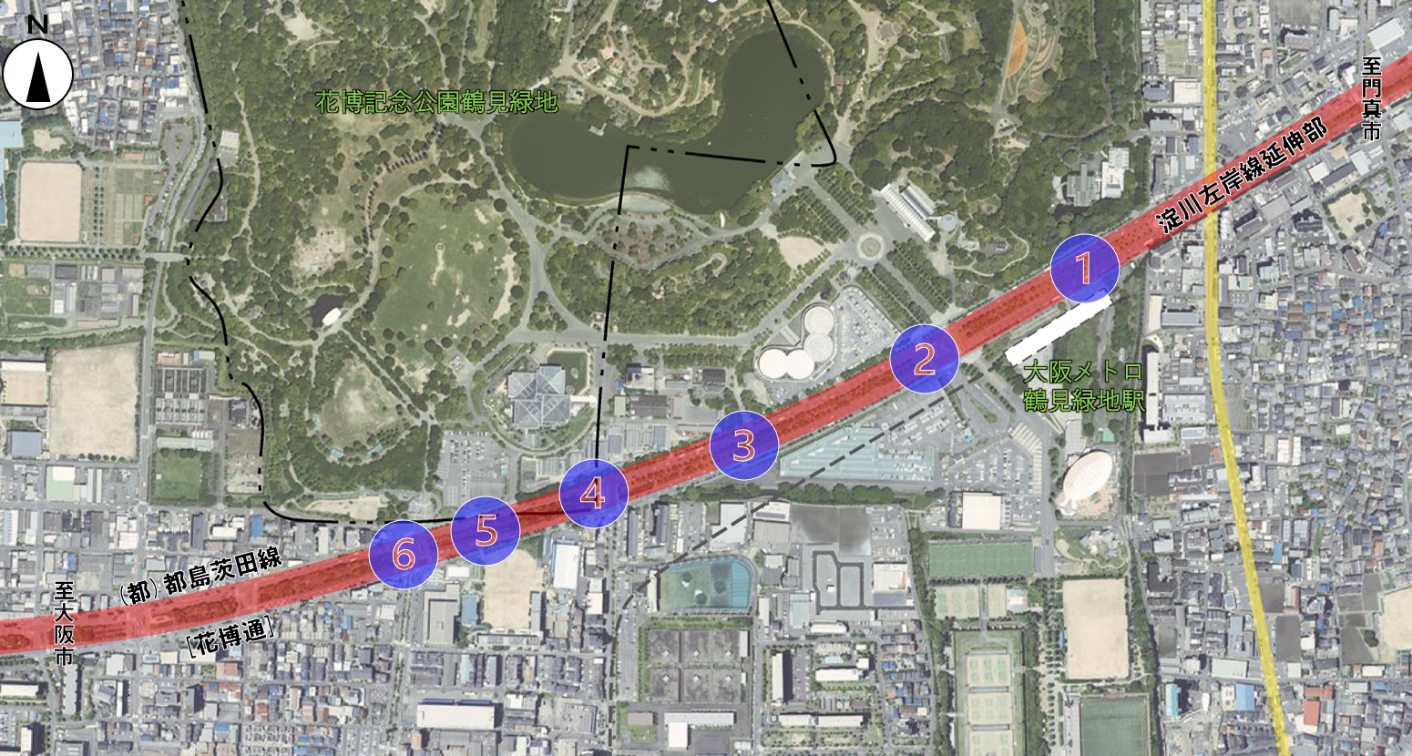 ⑥緑地橋交差点 地下(鳥瞰ビュー)