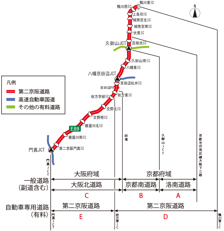 | 大阪府域 | E | 第二京阪道路 (枚方東IC~門真JCT) |