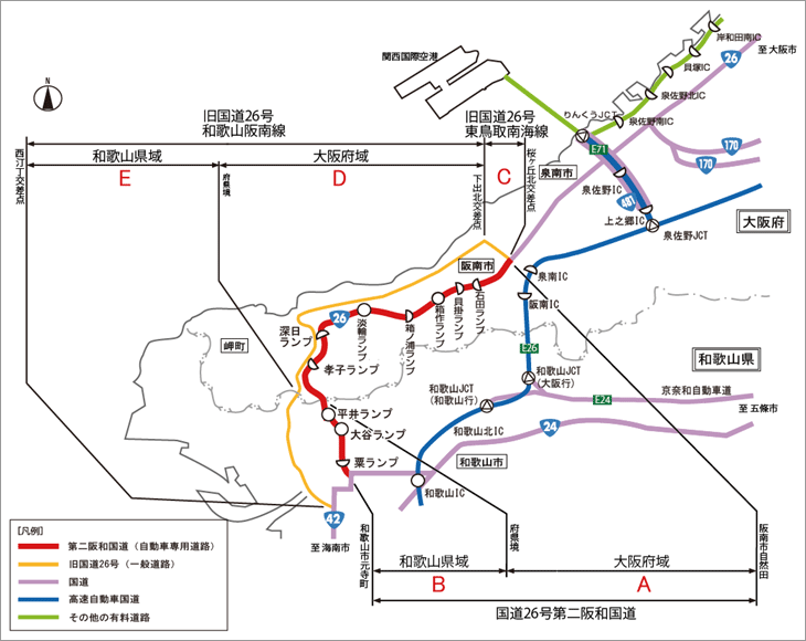 平成29年4月1日の第二阪和国道の開通に伴い、旧国道26号は大阪府道和歌山阪南線、大阪府道東鳥取南海線及び、和歌山県道和歌山阪南線へと変更しております。