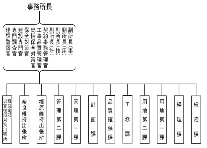 | 平成13年1月 | 国土交通省近畿地方整備局奈良国道工事事務所に名称変更 |