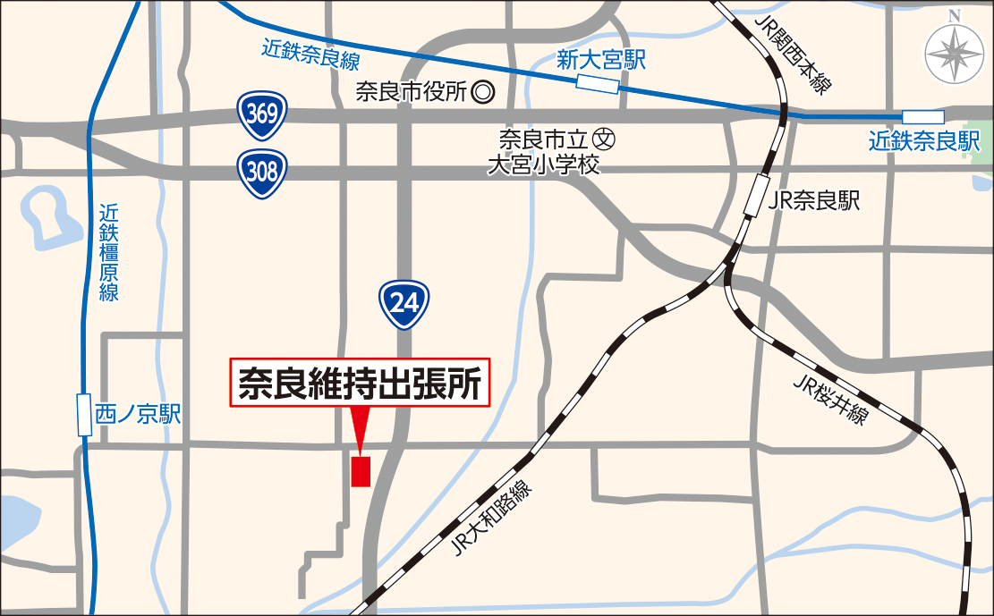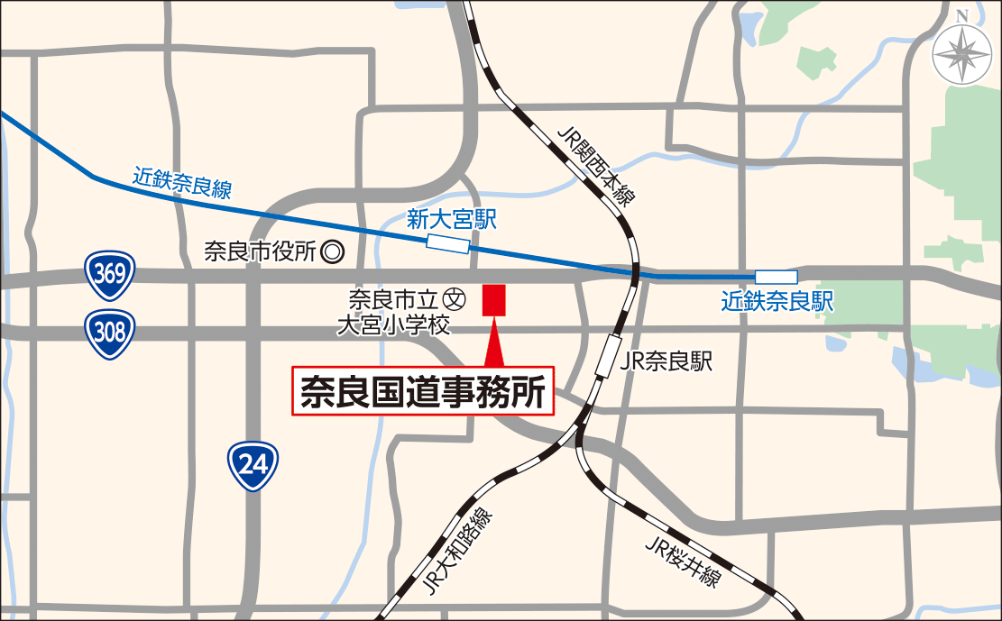 24号(京奈和自動車道の一部を含む)、25号(名阪国道及び王寺町~大和郡山市)、163号について、維持・管理を担当しています。 -