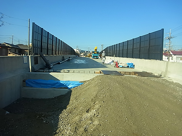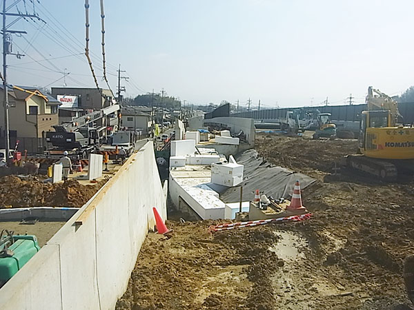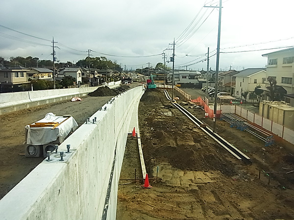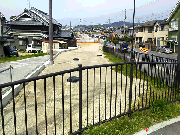 輿留~小吉田地区において、埋蔵文化財調査、道路設計、用地調査および用地取得を推進しております。