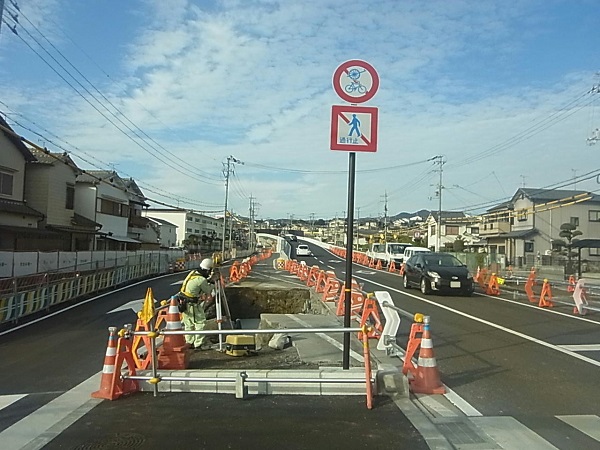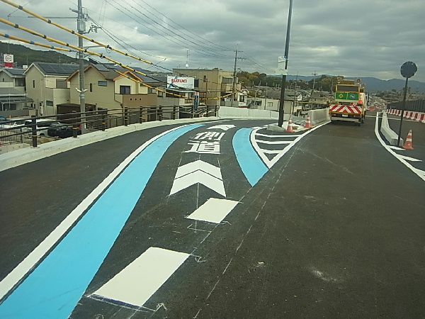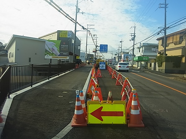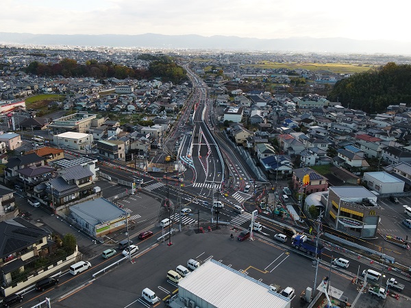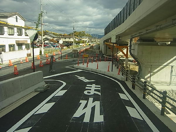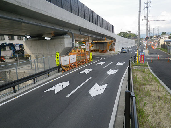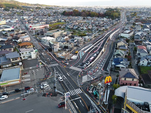 また、令和元年11月30日には、三室交差点にいかるがパークウェイ本線が接続し、南側側道部の対面通行から本線部への通行に交通を切替えました。