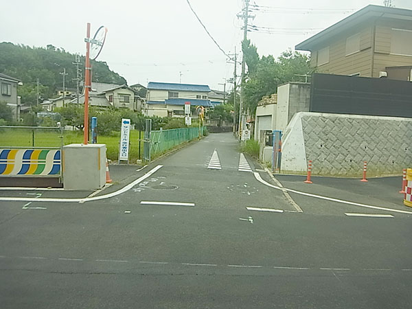 紅葉ヶ丘地区の歩道部についても、警察と協議し、自転車の安全対策として、ポストコーンやカーブミラー、接続道路の一旦停止を促す路面標示を設置しました。(令和元年7月18日設置)