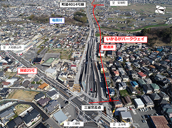 国道25号いかるがパークウェイの整備状況をお知らせしてまいります。