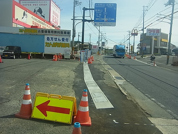 • 交差点南西部の県道信貴山線の歩道設置も完了しました。