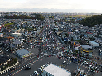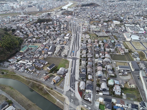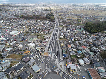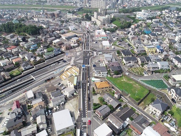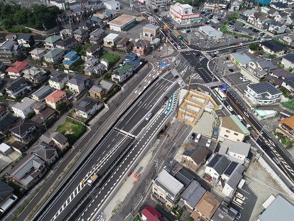 近隣にお住まいの方々やご通行の皆様のご理解・ご協力のもと予定通り工事の完成を迎えられたこと、心より感謝申し上げます。 引き続き、側道部の歩道整備工事等を行って参りますので、今後とも、皆様のご理解とご協力をお願いいたします。