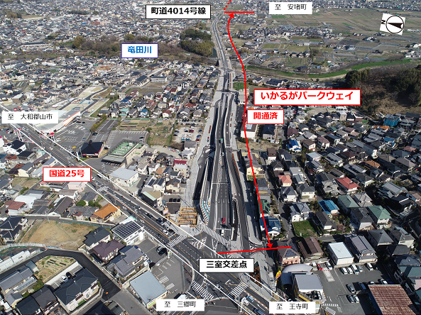 現在、国道25号三室交差点から町道4014号線交差区間において、供用済です。