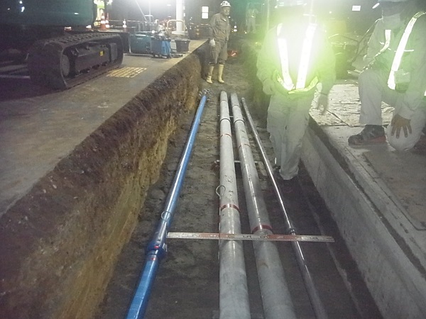 • 新しくできる歩道の地下に電線共同溝の管路を埋設しました。