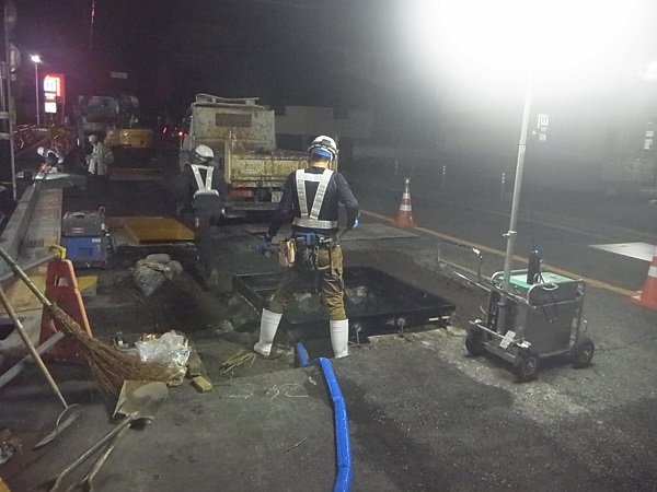 • 交差点南西部 県道信貴山線の排水桝の改修の状況です。