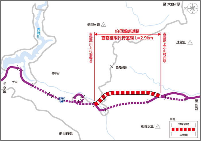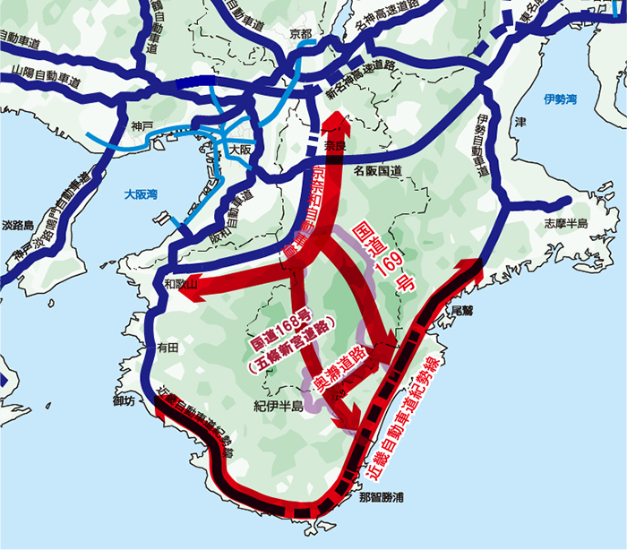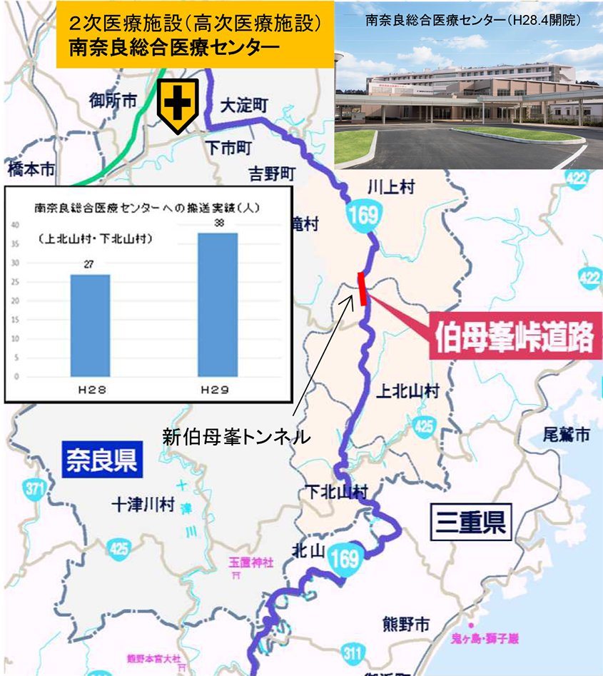 国道169号は紀伊半島アンカールートの一部を形成するとともに、第二次緊急輸送路に指定されており、 災害時において重要な役割を担う道路となっています。また、国道309号は冬期通行止めとなり、 地域にとっては年間を通じて安定的に利用できる唯一の幹線道路です。