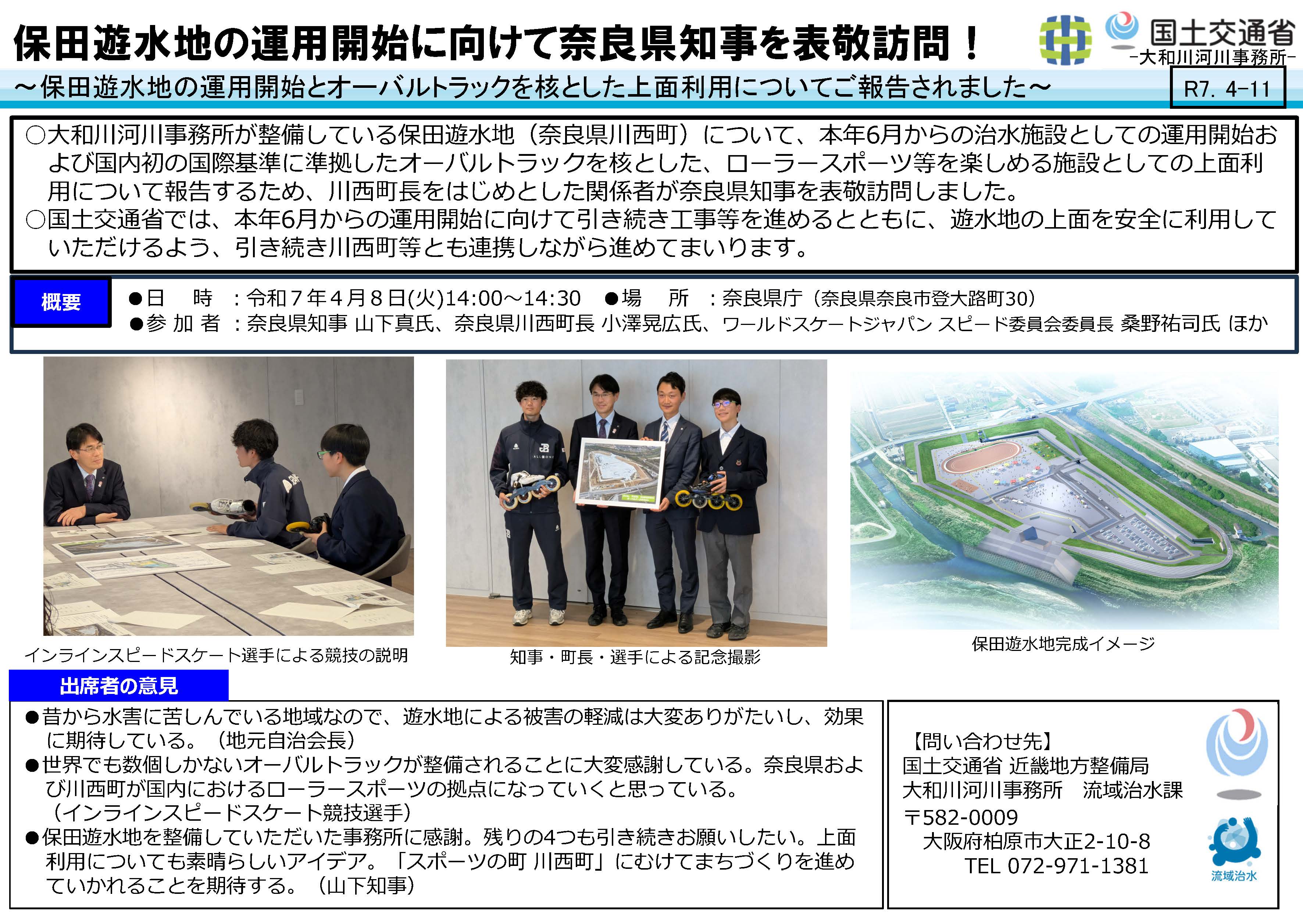 【大和川河川事務所】保田遊水地の運用開始に向けて奈良県知事を表敬訪問! ~保田遊水地の運用開始とオーバルトラックを核とした上面利用についてご報告されました~