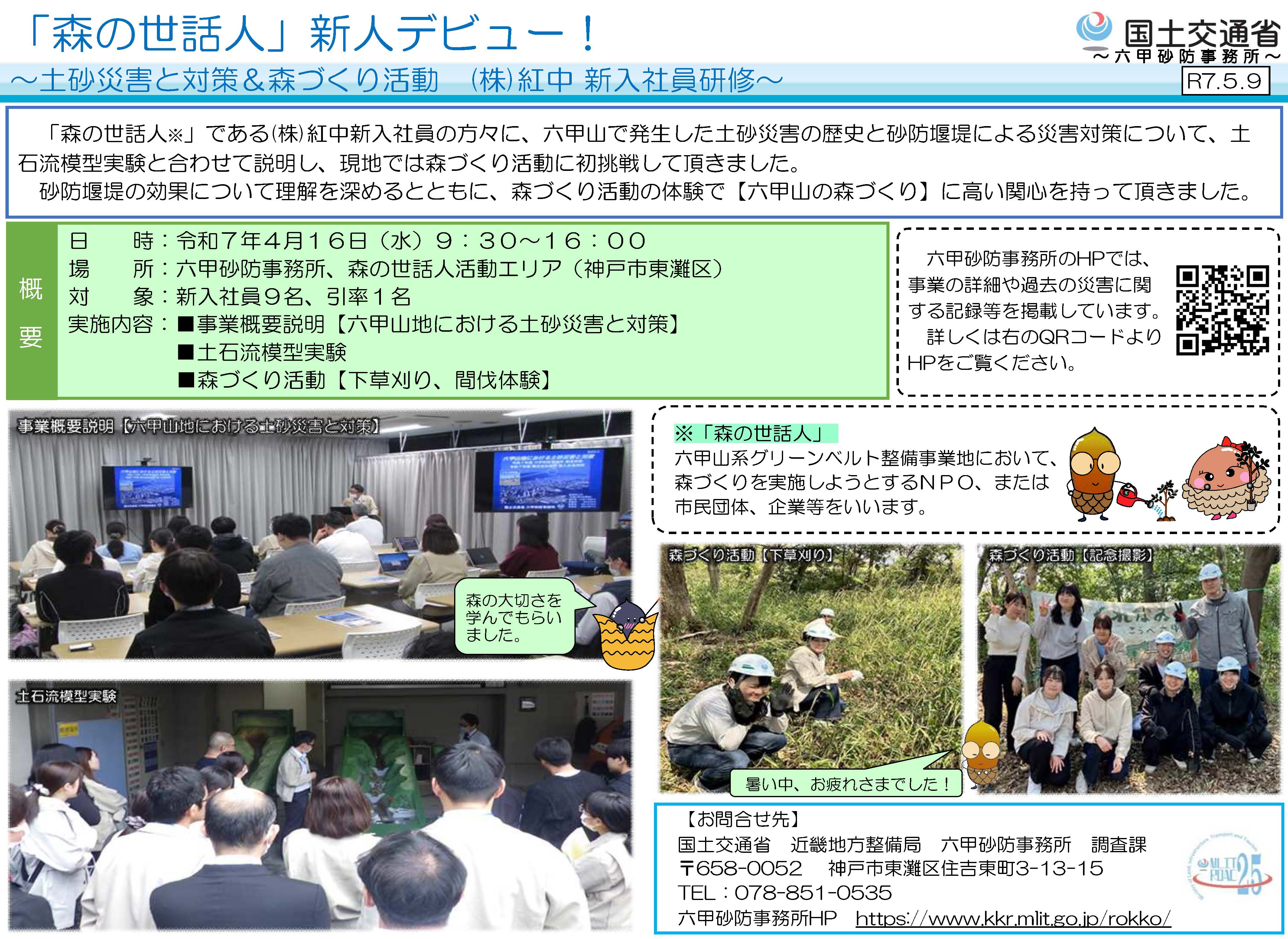 【六甲砂防事務所】「森の世話人」新人デビュー!~土砂災害と対策&森づくり活動 (株)紅中 新入社員研修~