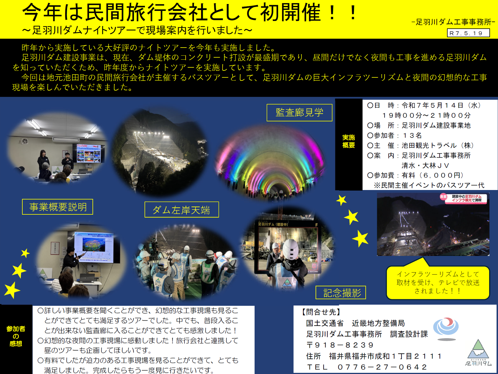 【足羽川ダム工事事務所】今年は民間旅行会社として初開催!!