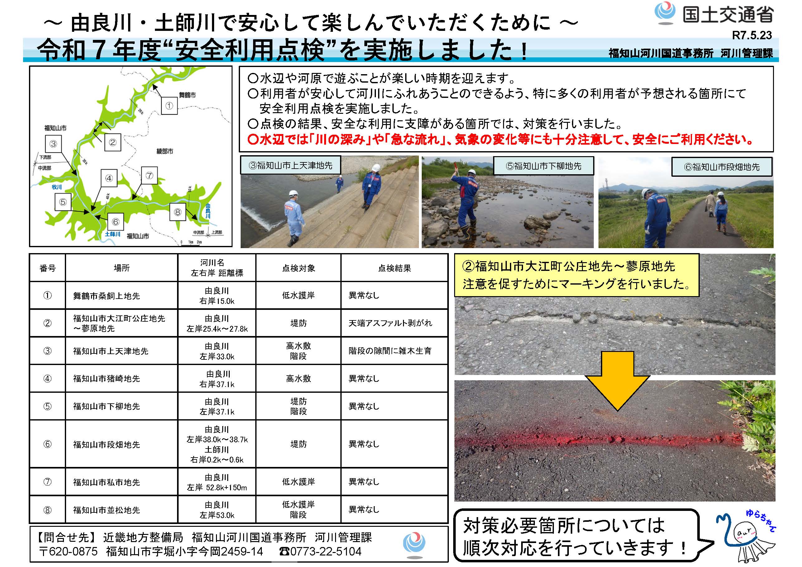 【福知山河川国道事務所】~由良川・土師川で安心して楽しんでいただくために~令和7年度安全利用点検を実施しました!