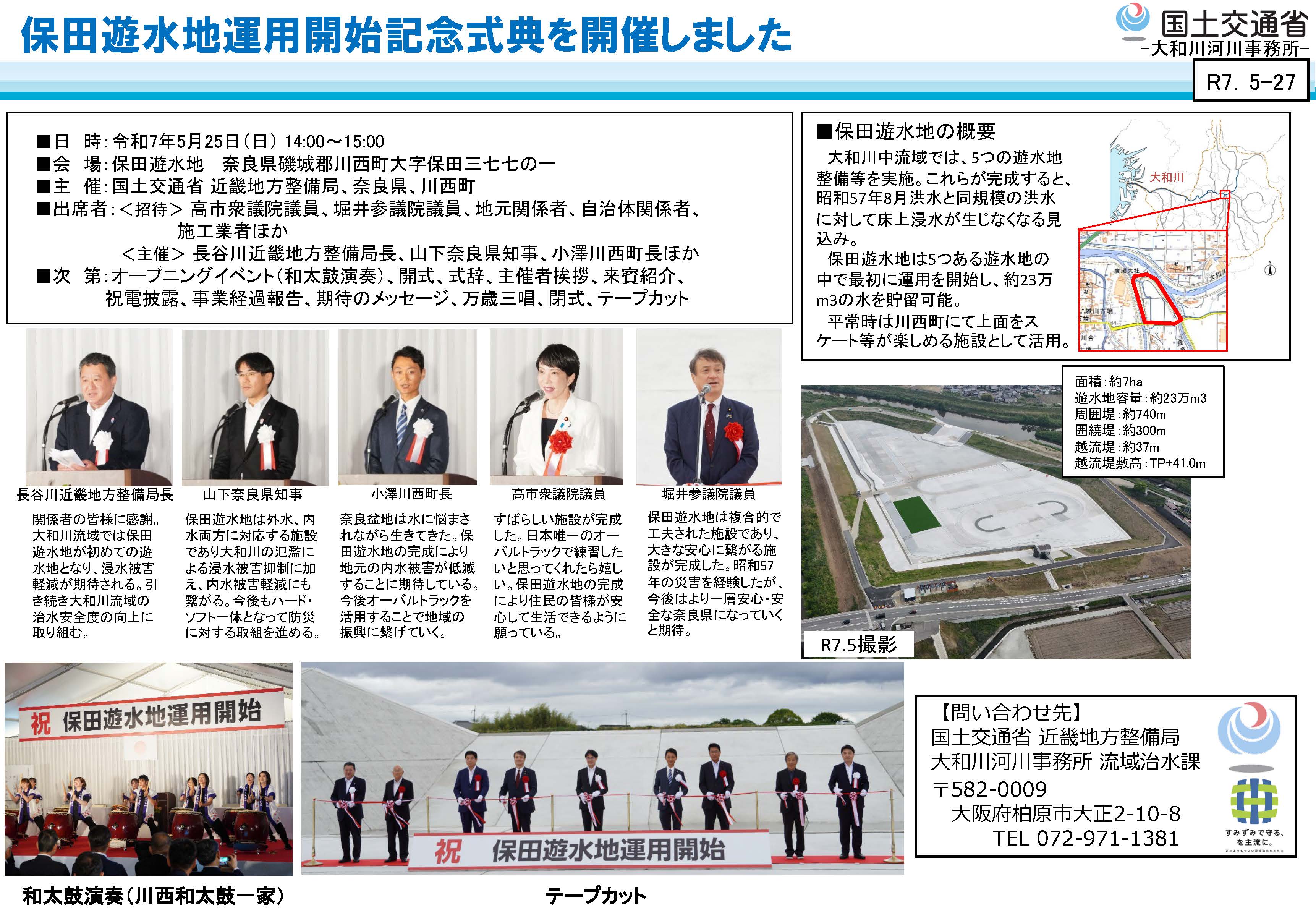 【大和川河川事務所】保田遊水地運用開始記念式典を開催しました