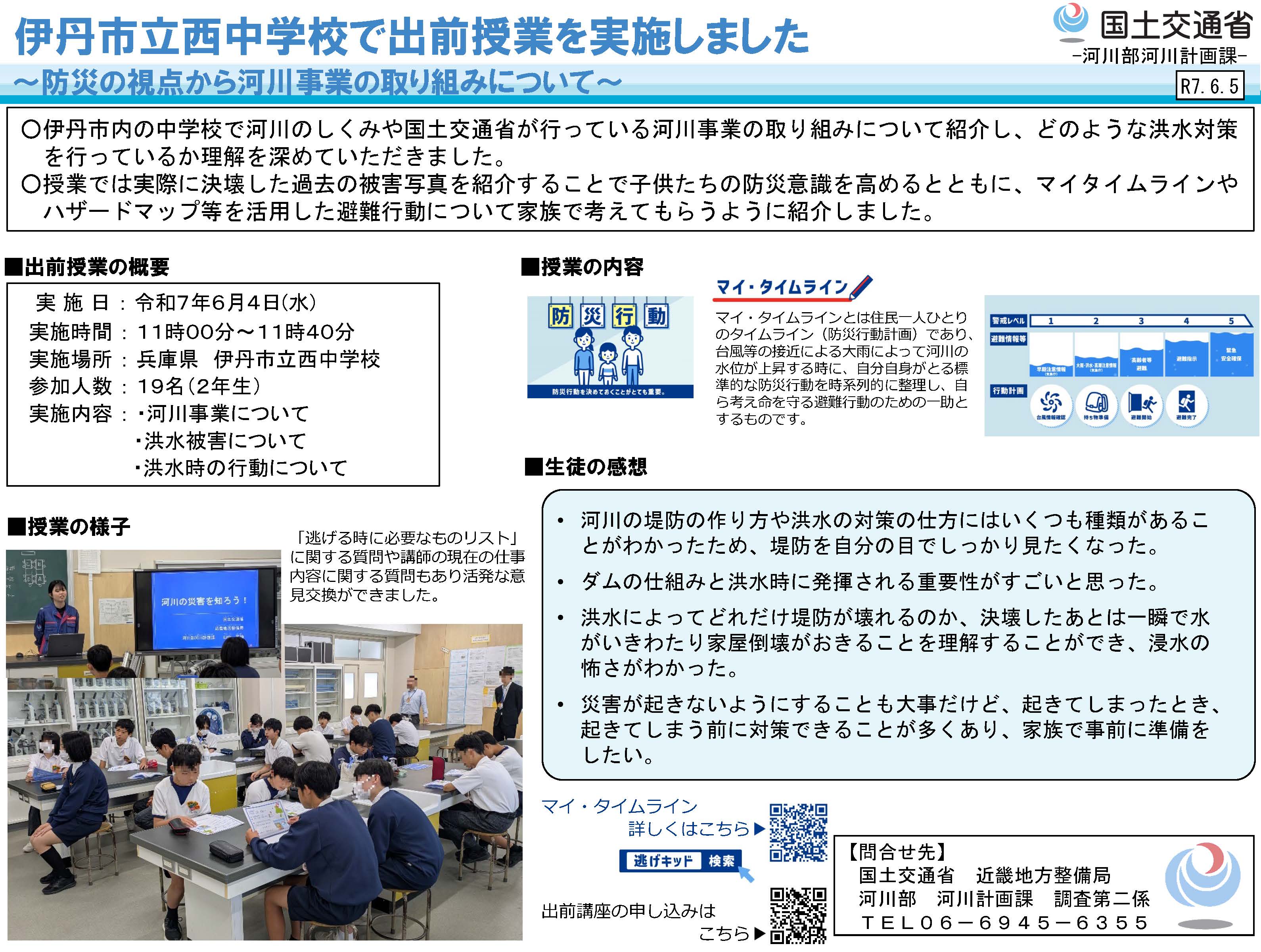 【河川計画課】伊丹市立西中学校で出前授業を実施しました