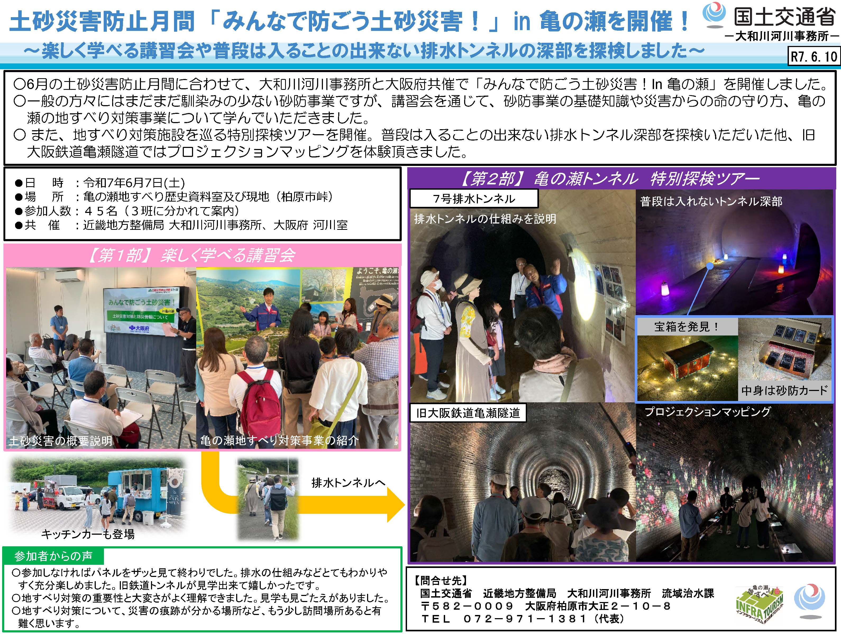 【大和川河川事務所】土砂災害防止月間「みんなで防ごう土砂災害!」in 亀の瀬を開催!