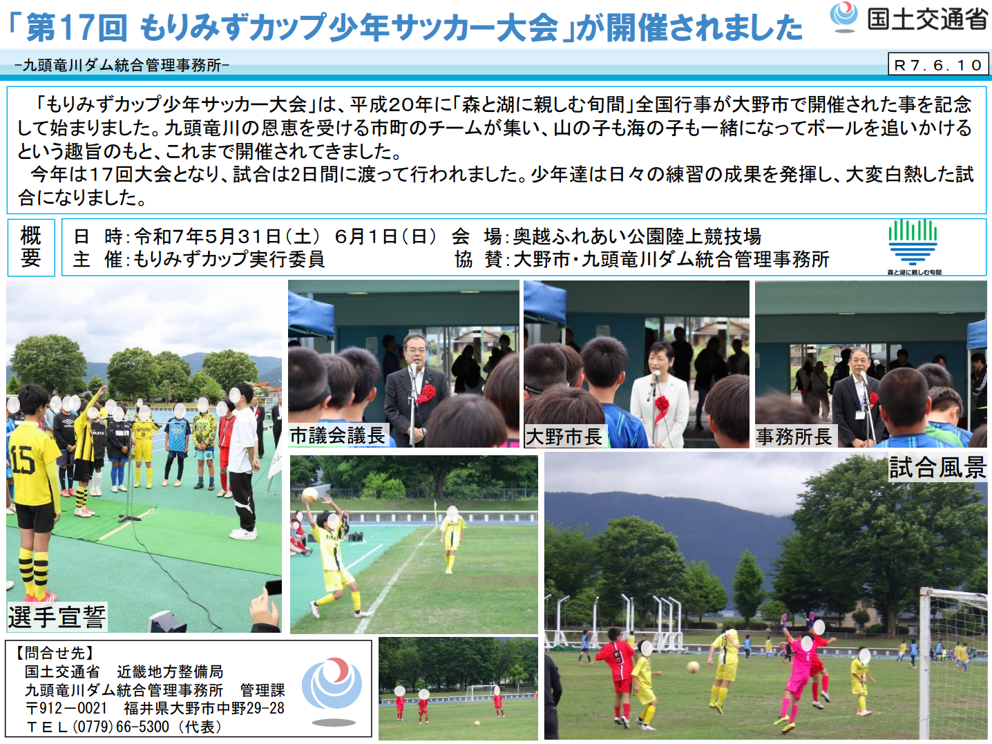 【九頭竜川ダム統合管理事務所】「第17回もりみずカップ少年サッカー大会」が開催されました
