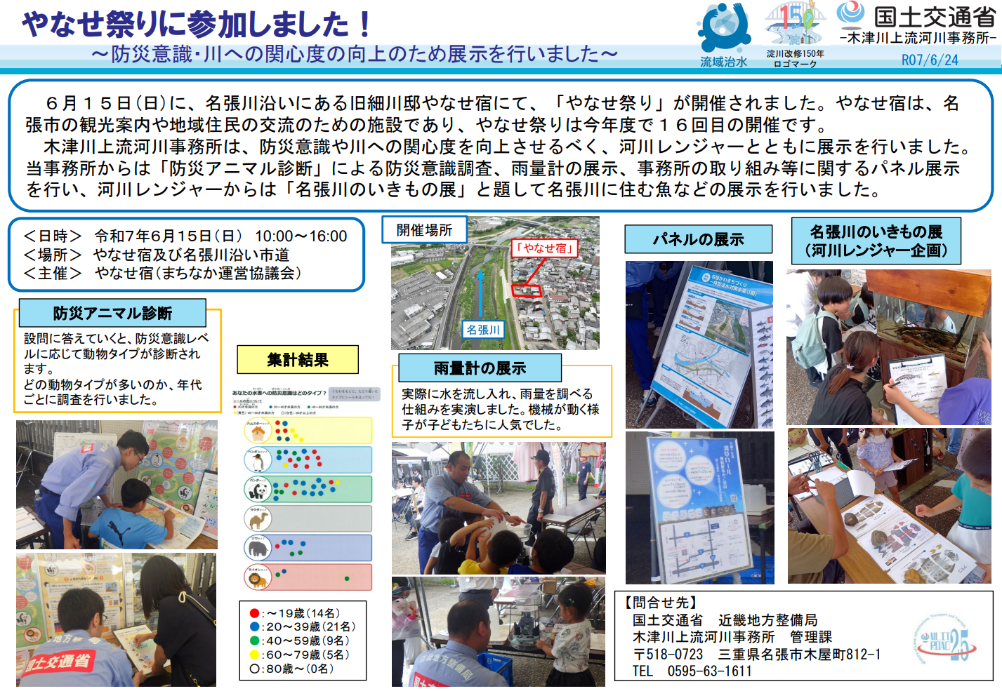 【木津川上流河川事務所】 やなせ祭りに参加しました!~防災意識・川への関心度の向上のため展示を行いました~