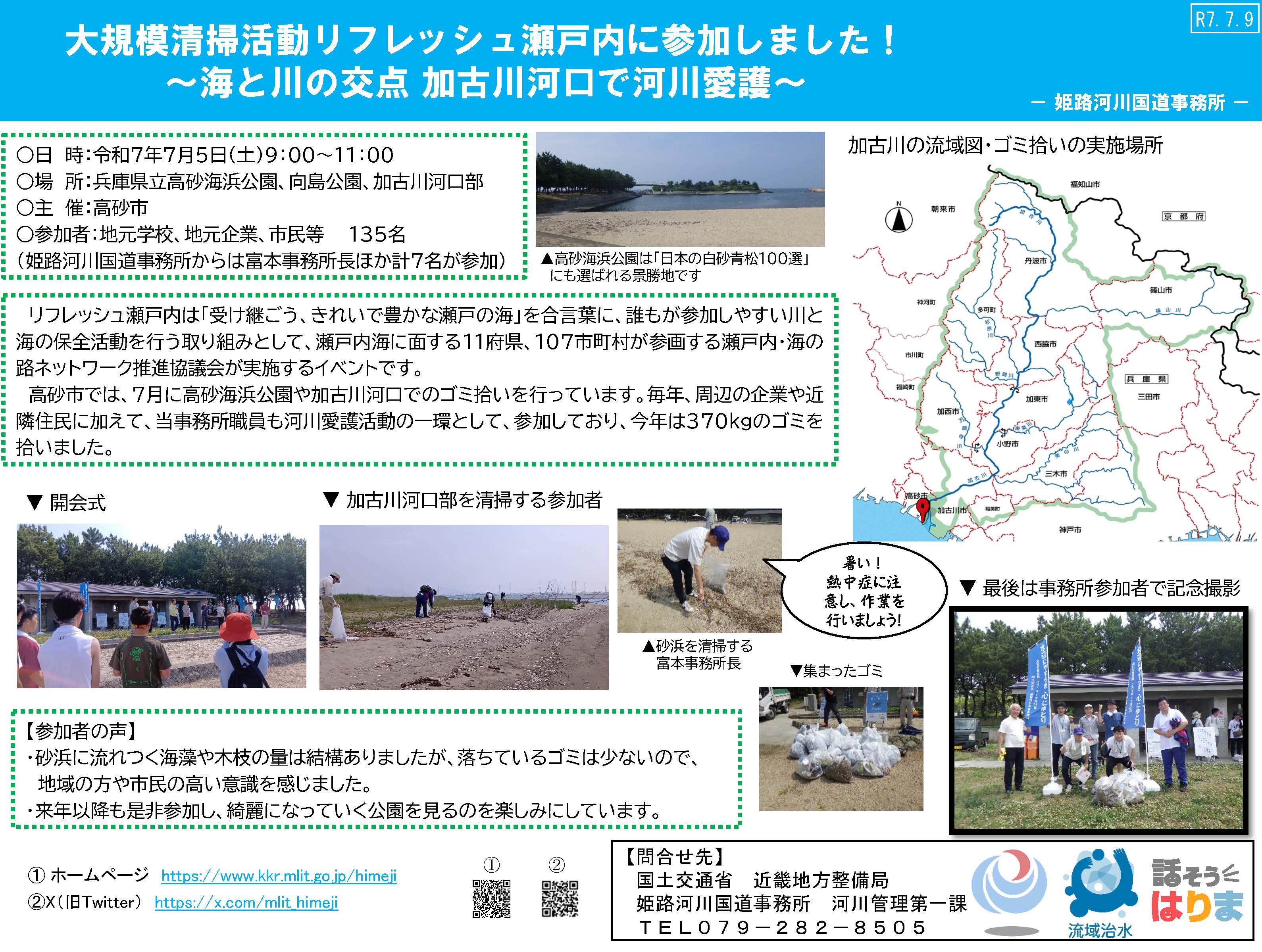 【姫路河川国道事務所】大規模清掃活動リフレッシュ瀬戸内に参加しました!