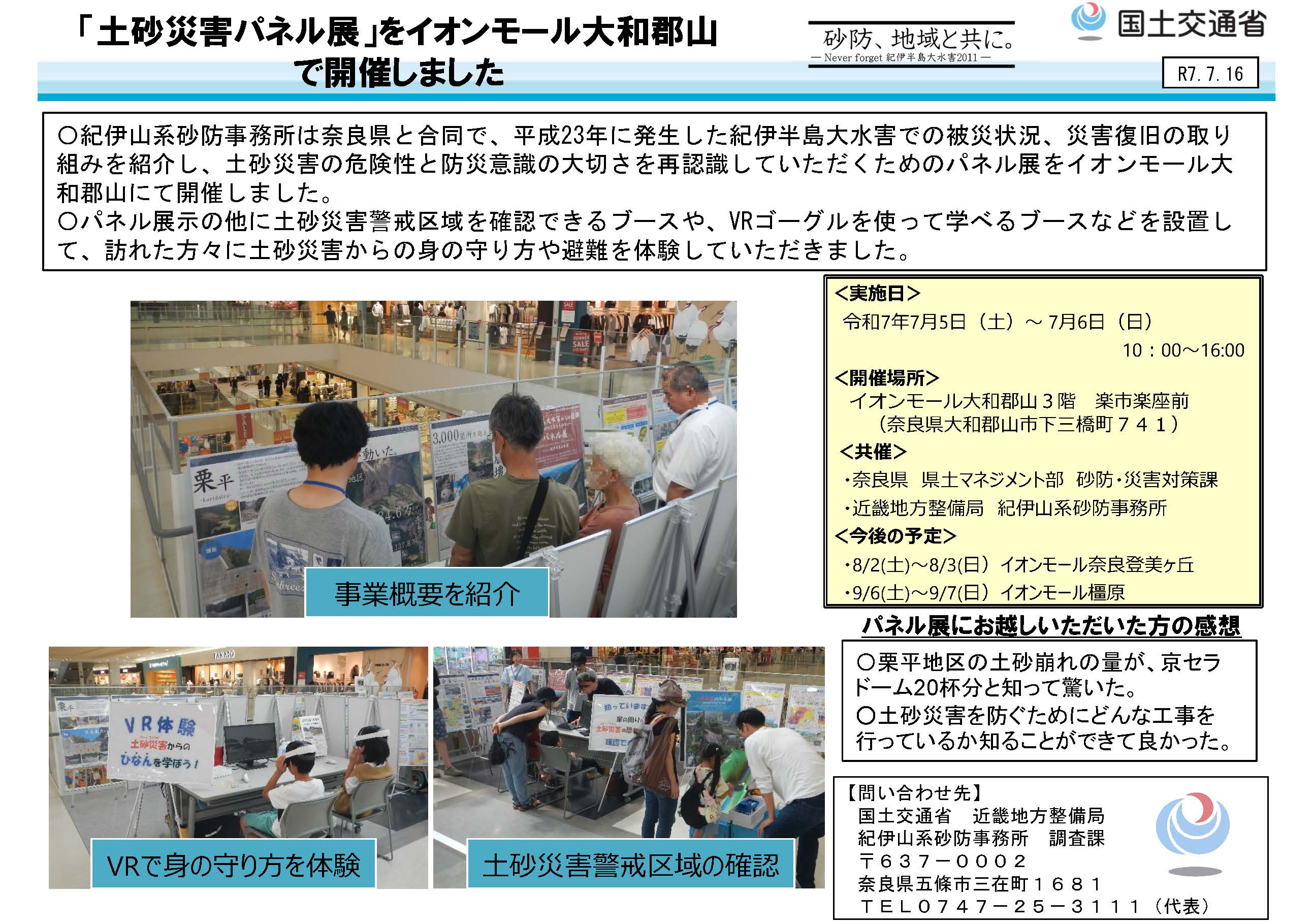 【紀伊山系砂防事務所】 「土砂災害パネル展」をイオンモール大和郡山 で開催しました