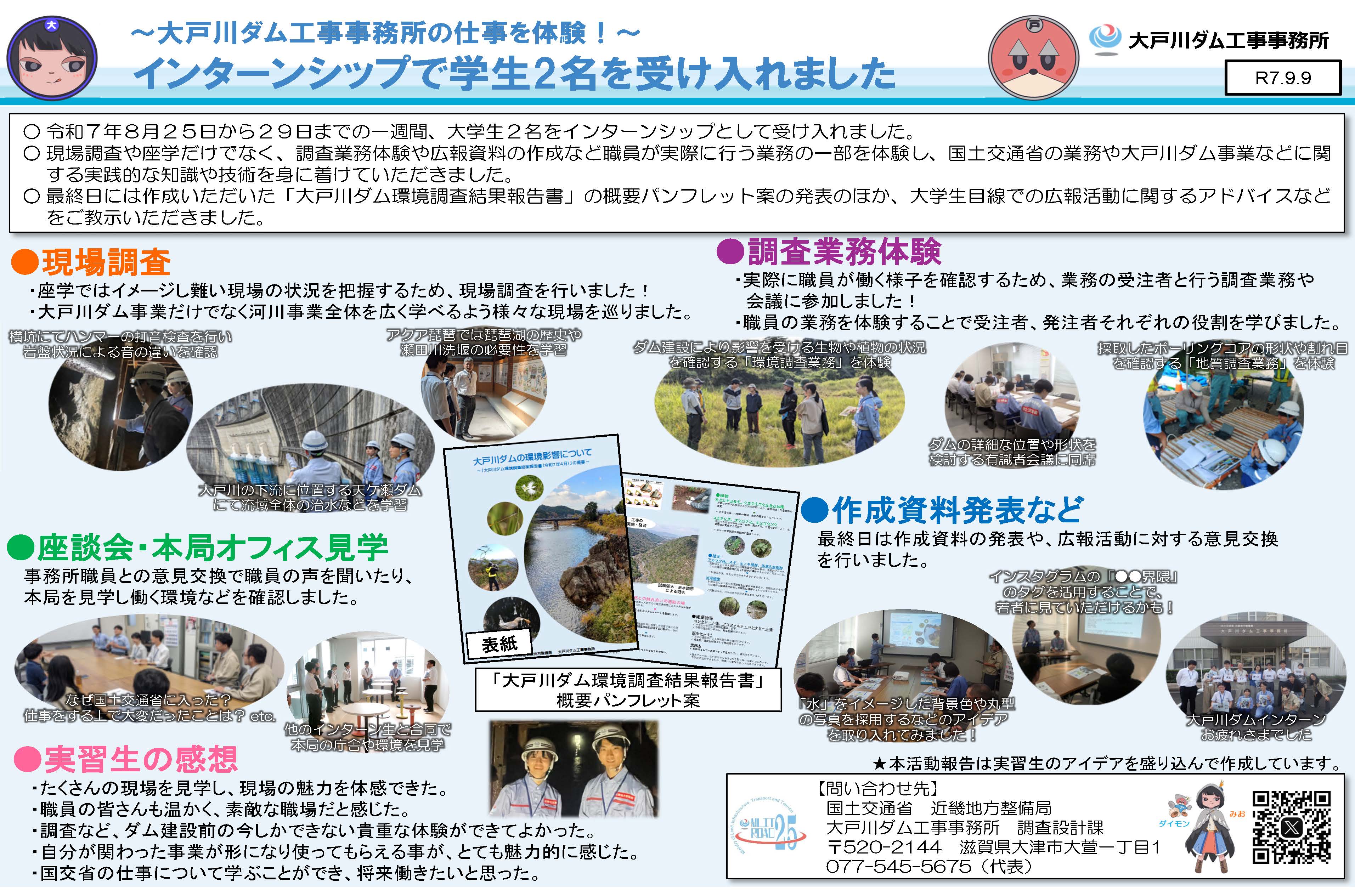 【大戸川ダム工事事務所】インターンシップで学生2名を受け入れました