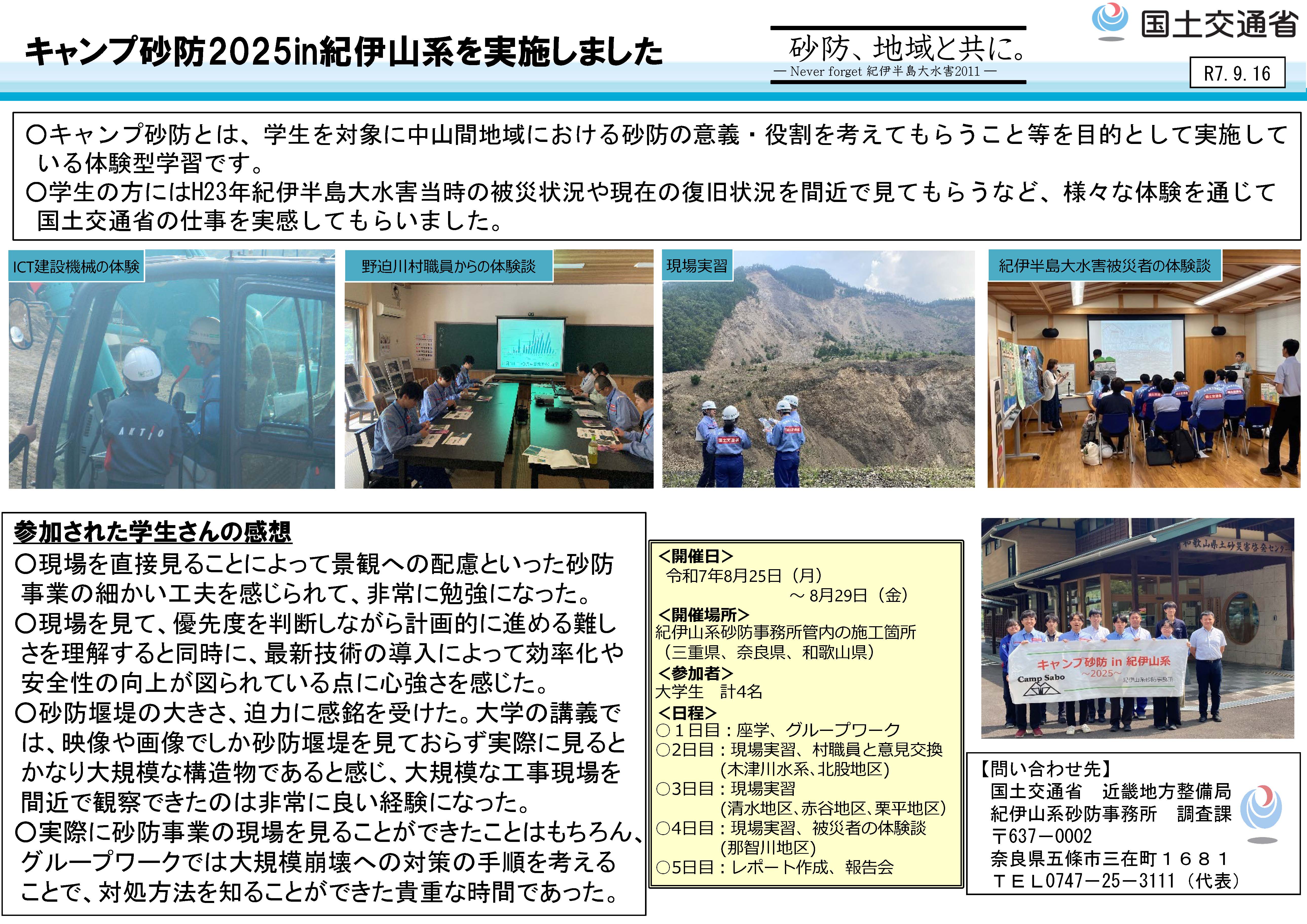 【紀伊山系砂防事務所】 キャンプ砂防2025in紀伊山系を実施しました