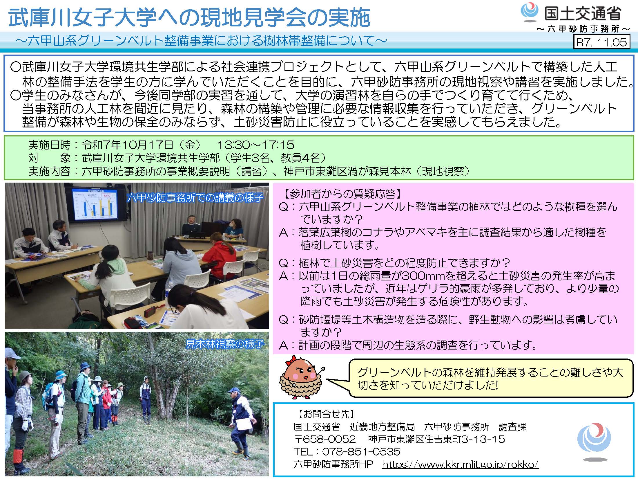 【六甲砂防事務所】武庫川女子大学への現場見学会を実施しました