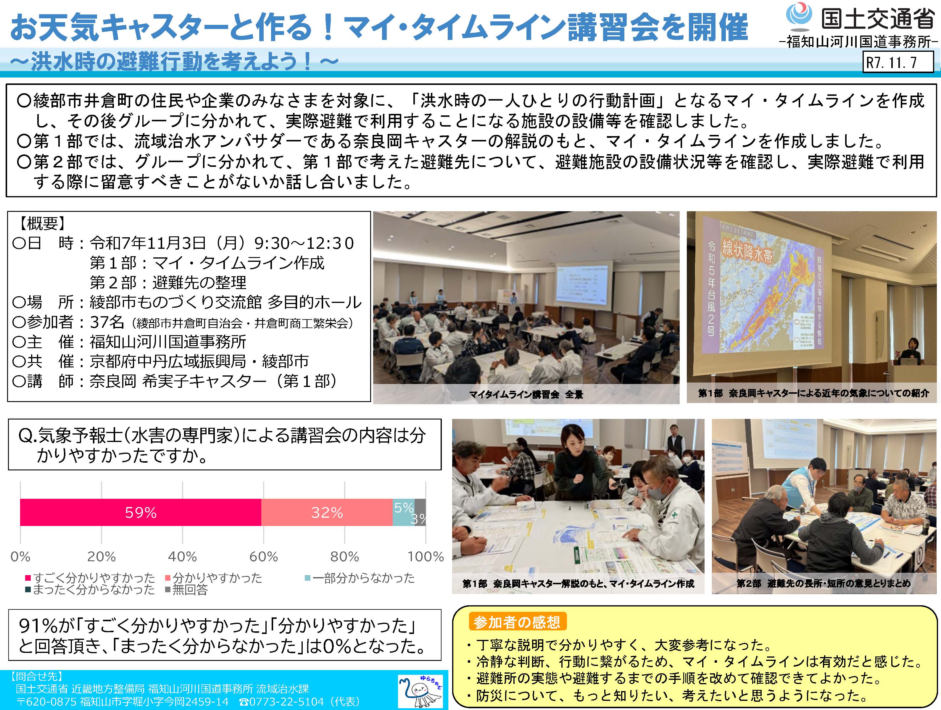【福知山河川国道事務所】お天気キャスターと作る!マイ・タイムライン講習会を開催