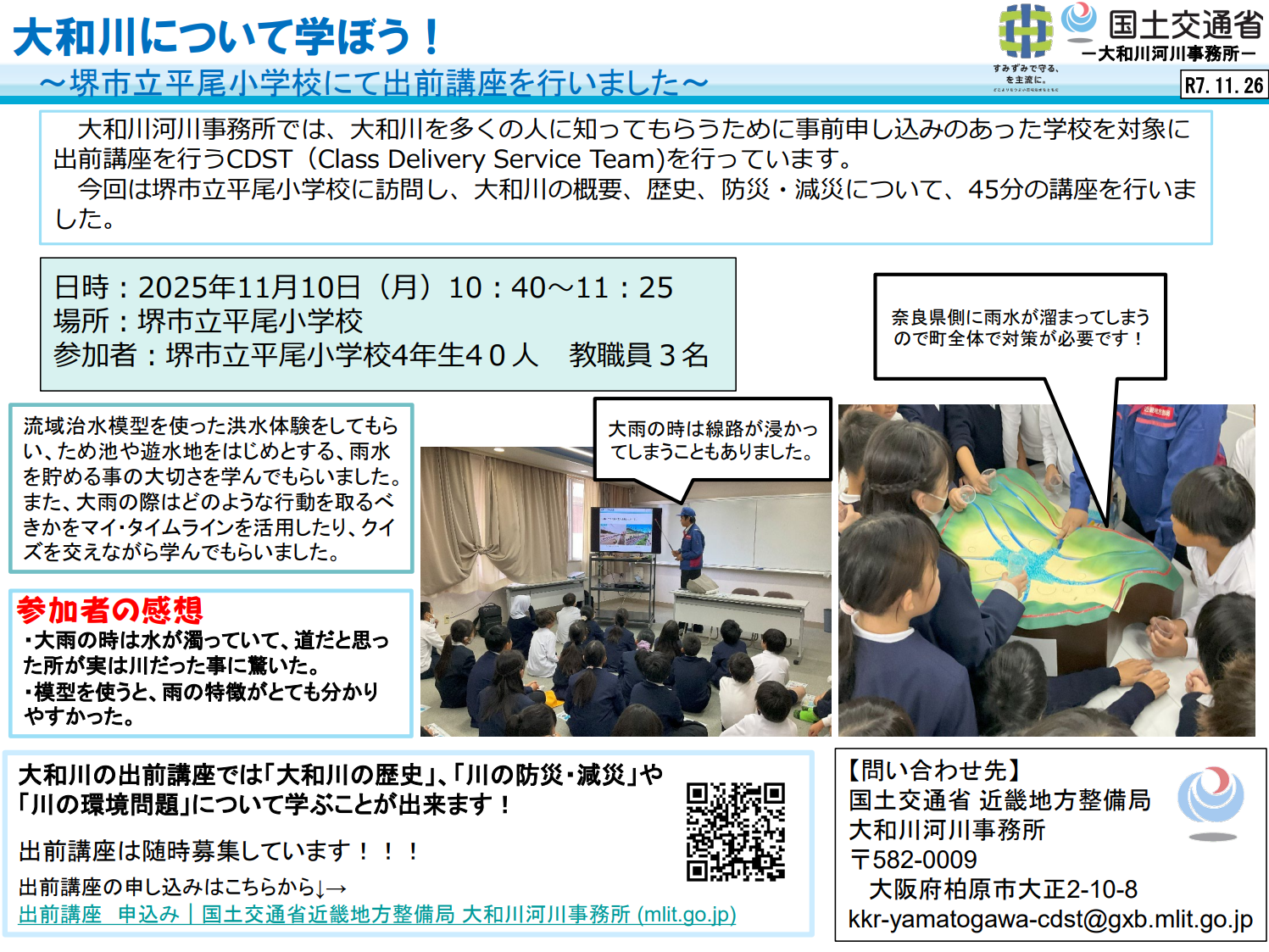 【大和川河川事務所】大和川について学ぼう!~堺市立平尾小学校にて出前講座を行いました~