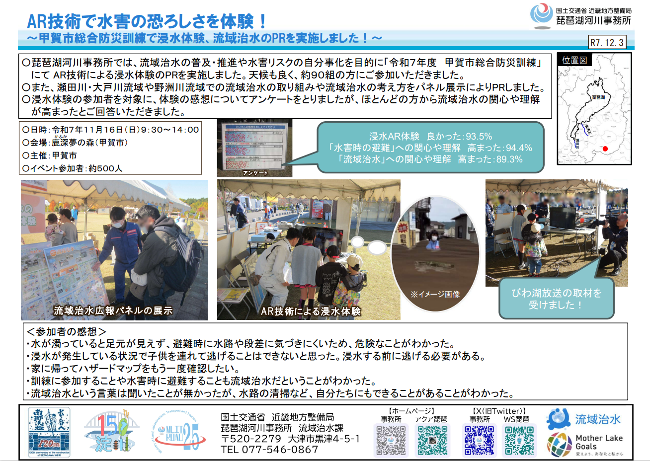 【琵琶湖河川事務所】AR技術で水害の恐ろしさを体験!~甲賀市総合防災訓練で浸水体験、流域治水のPRを実施しました!~